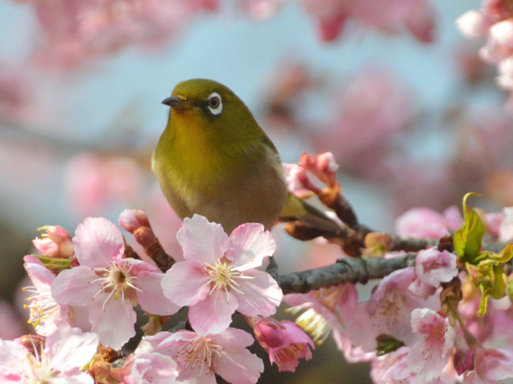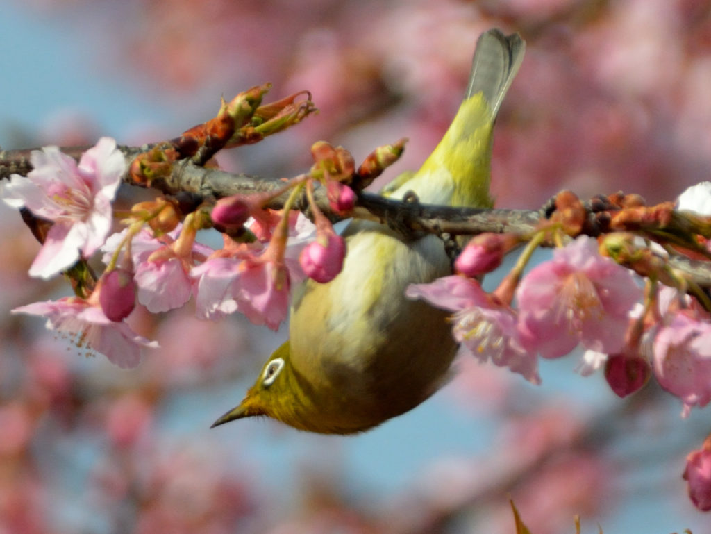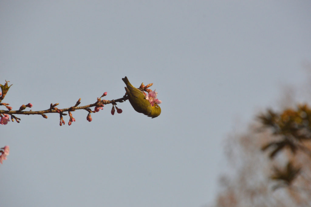 目白を撮影するため カメラ設定 シャッター優先ISO1600 で撮影 色が濃い