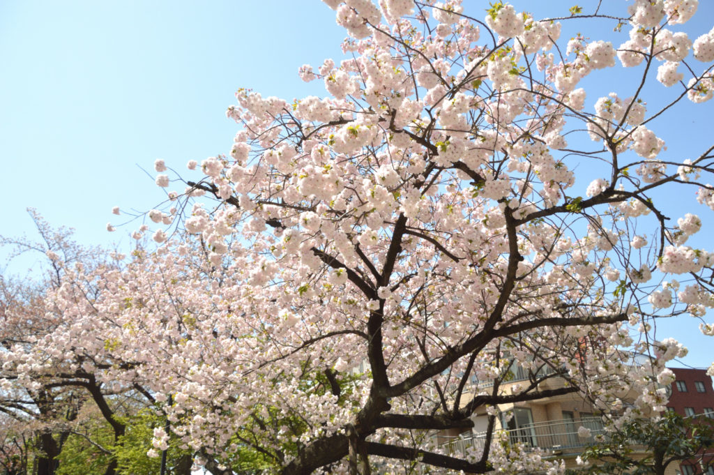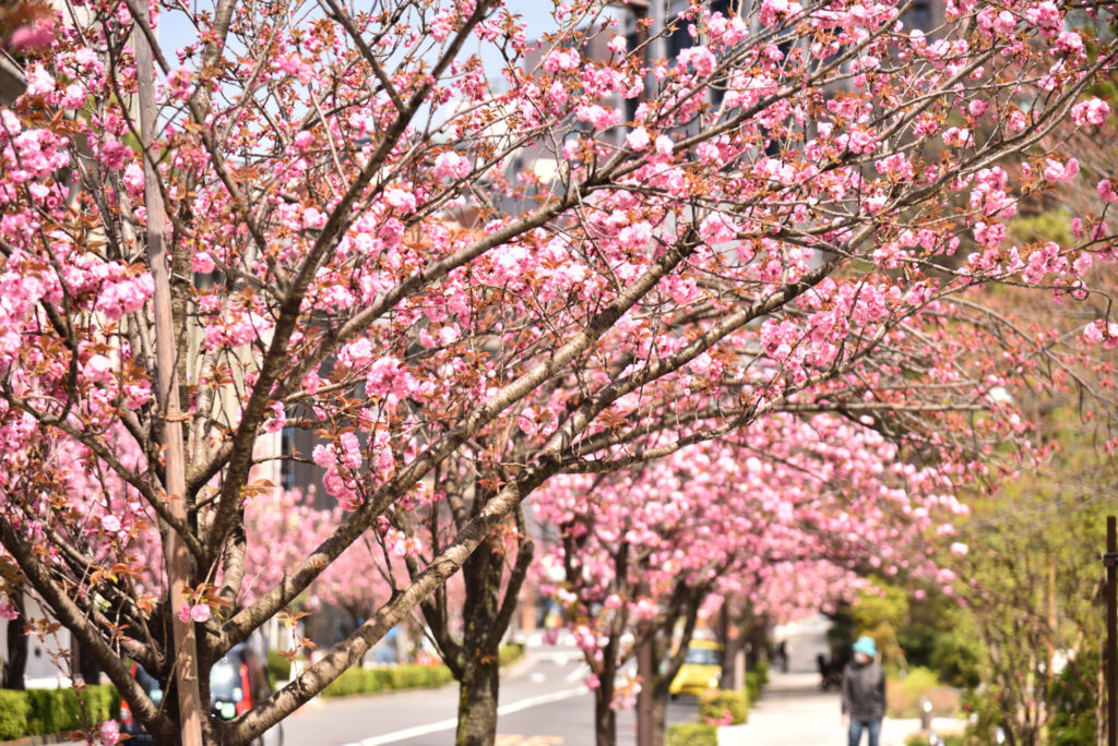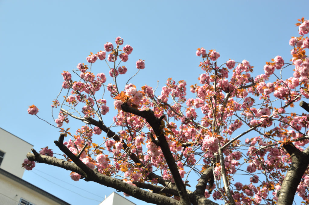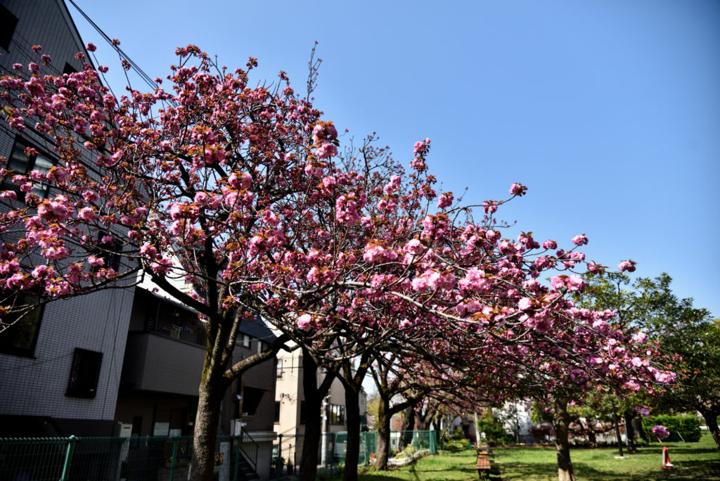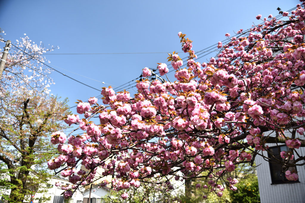 品川税務署 ソメイヨシノは葉桜に 代わりに八重が咲き始めた