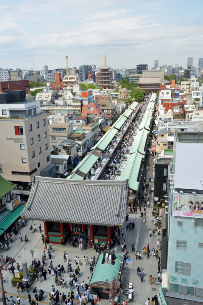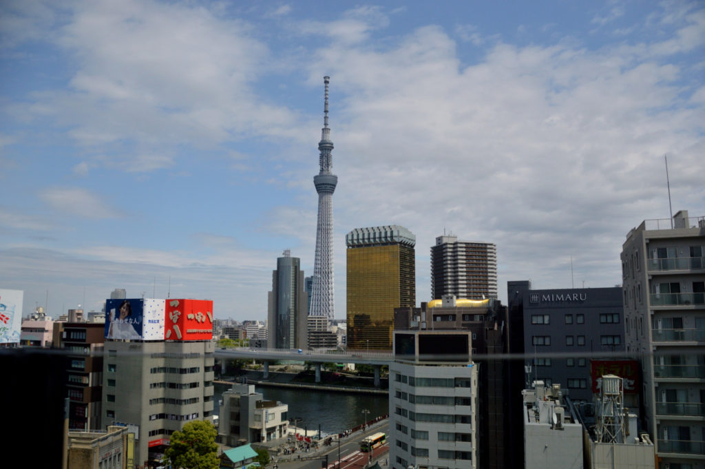浅草寺 雷門前にある台東区観光案内所8F展望台より隅田川 スカイツリー