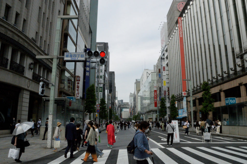 勝鬨橋を渡り築地場内は撤去工事中 場外を右手に見ながら きょう午前中に買い物を済ませた 通過 銀座4丁目 歩行者天国が実施されてた 久しぶり