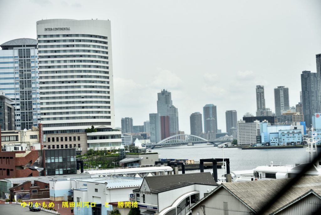 竹芝桟橋付近から隅田川河口と勝鬨橋 正面遠くの高層ビルは聖路加病院
