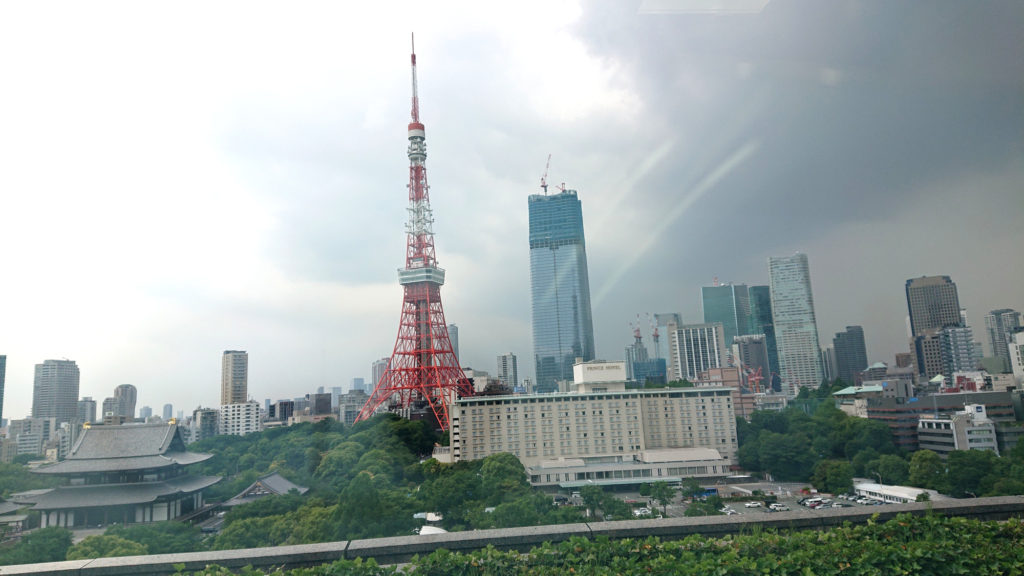 港区役所11階からみた東京タワー その横に見えるのが森ビルが建築中の再開発高層ビル