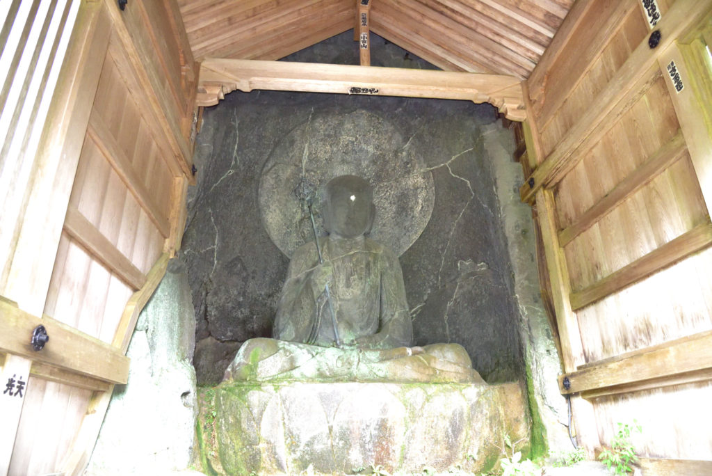 六道地蔵 国重文 元箱根摩崖仏 地蔵菩薩坐像 造立 正安二年 1300年 大きな岩に浮き彫りされた摩崖仏 蓮華座を除く像高3.15m 摩崖仏の地蔵菩薩坐像としては国内最大級 説明文によると