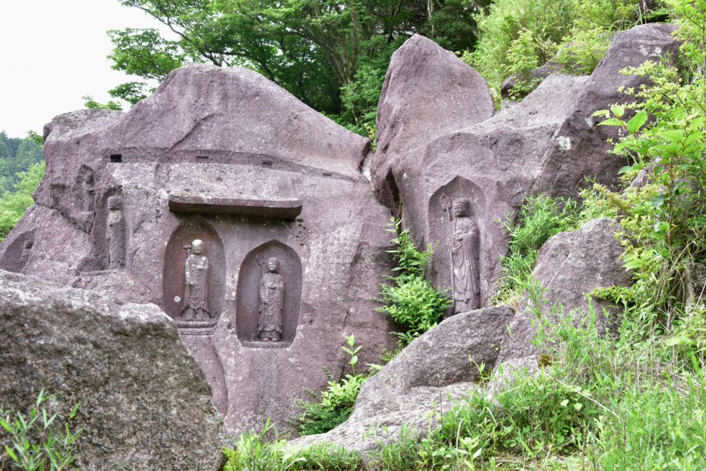 二十五菩薩 国重文 元箱根摩崖仏 阿弥陀如来立像 供養菩薩立像 地蔵菩薩立像 永仁元年 1293年 国道1号 側にある大きな岩盤に小さな仏像いくつも彫られてる