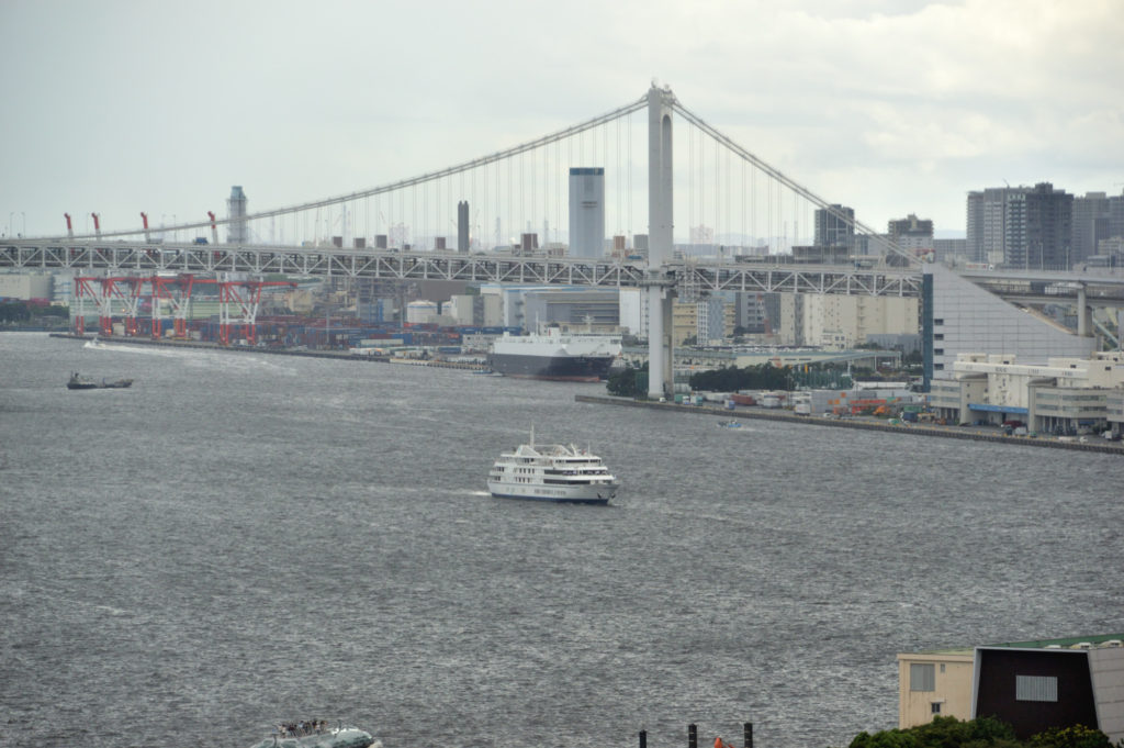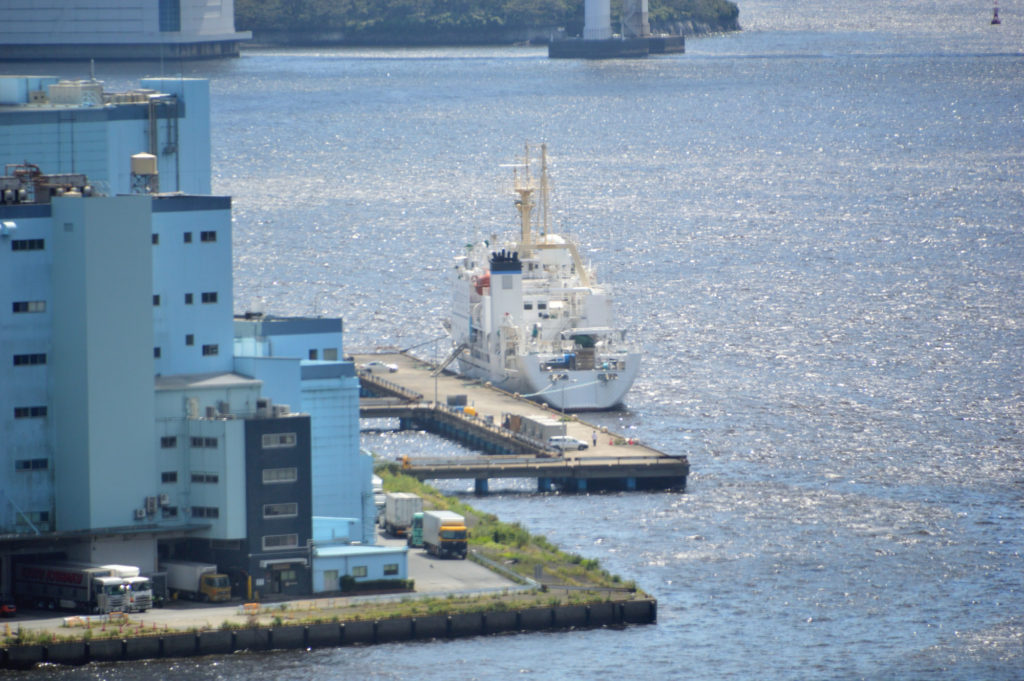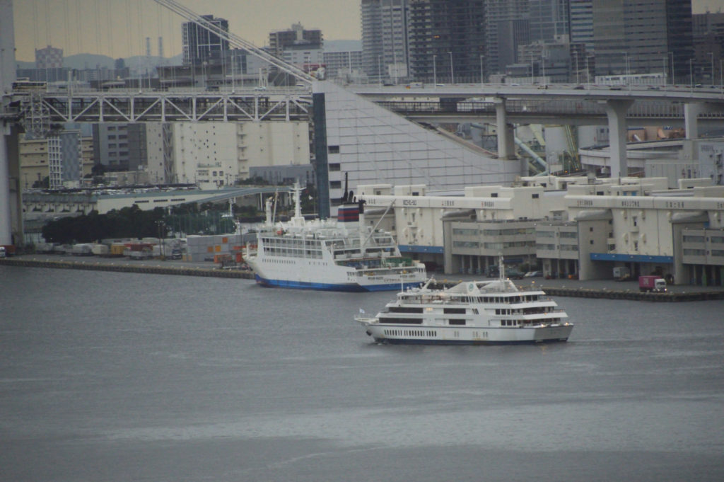 東京湾の風景 日の出桟橋と客船の出入り 接岸風景は青海埠頭