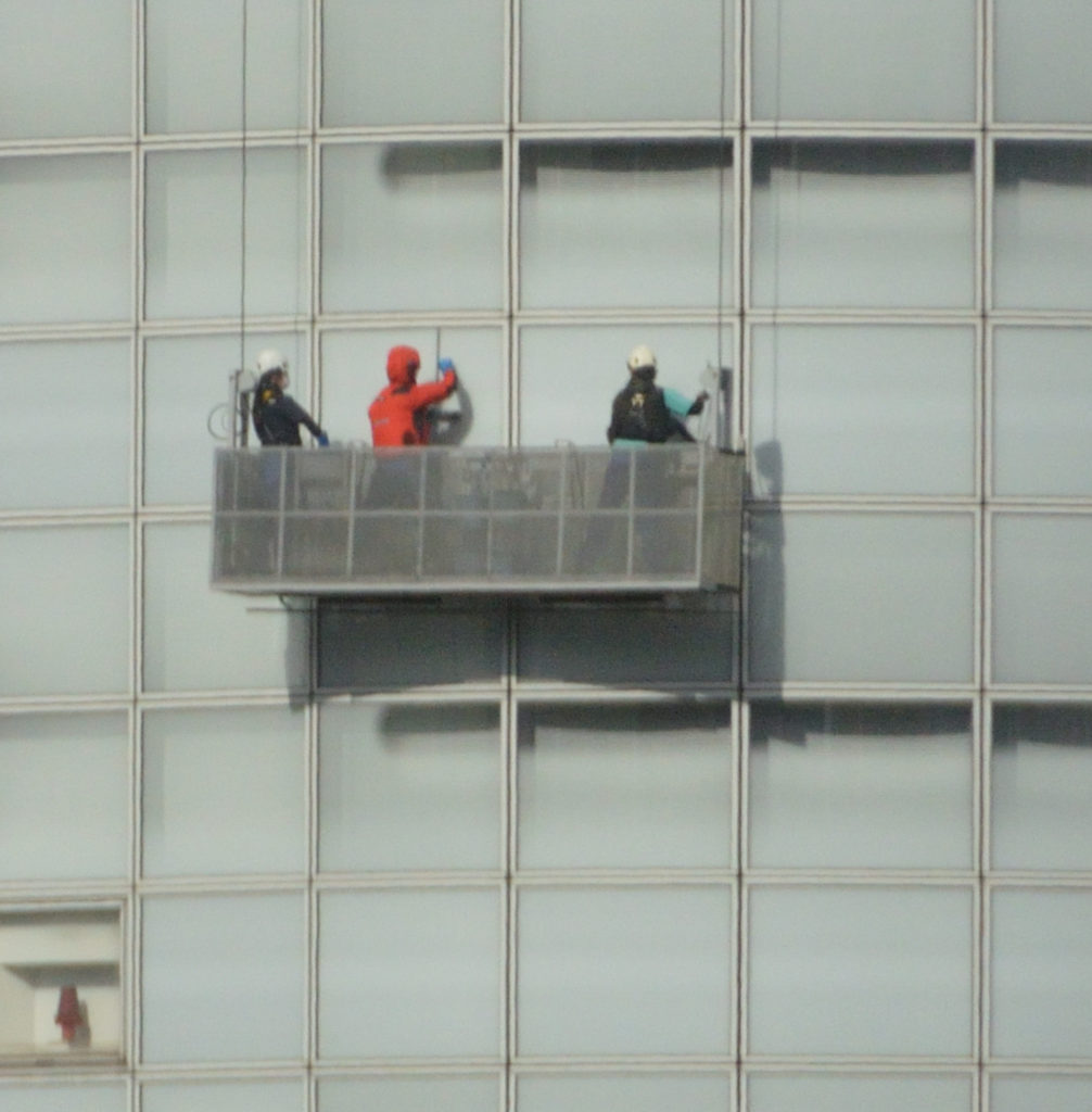 高層ビルの窓ふき風景