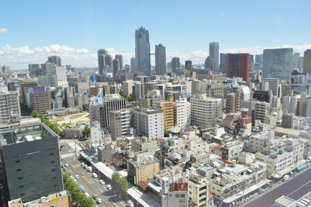 眼下は築地場外市場 遠くは聖路加タワー