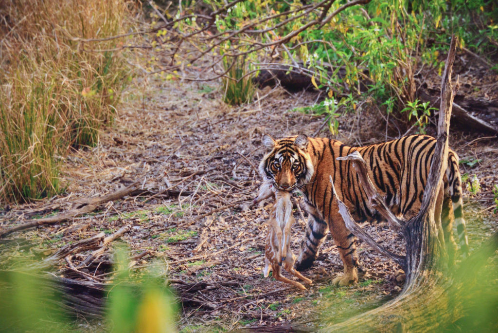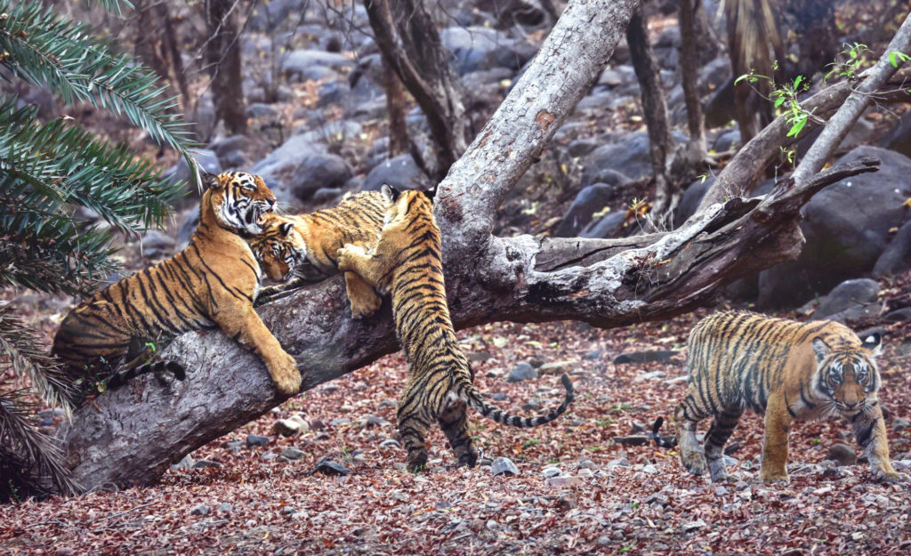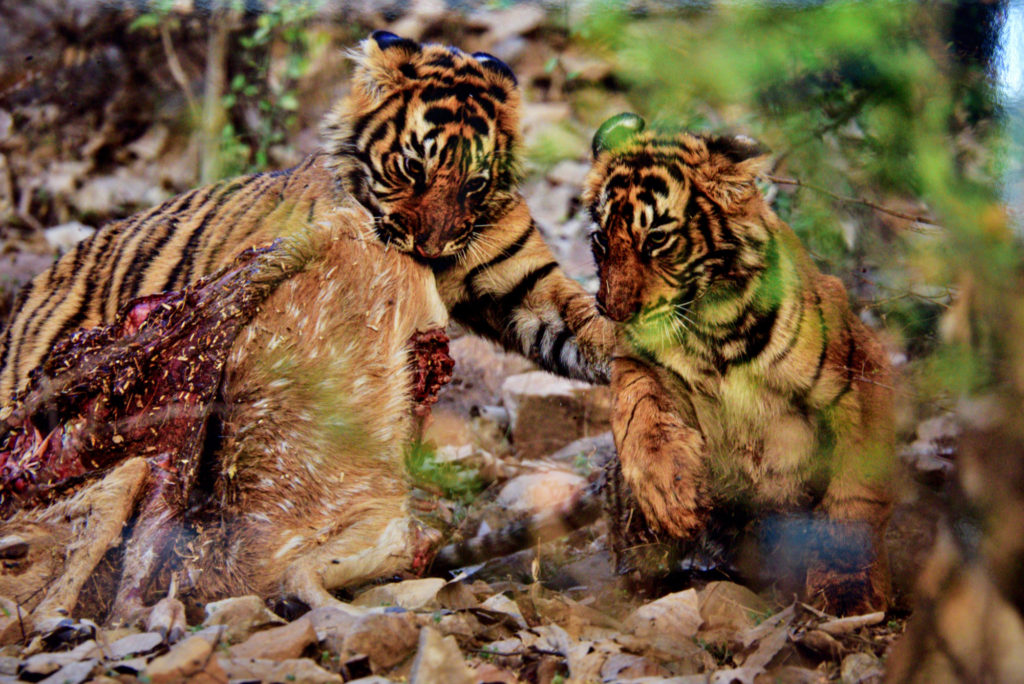本展の主役は、私がインドのランタンボール国立公園で追い続けている、野生の虎の親子達です。