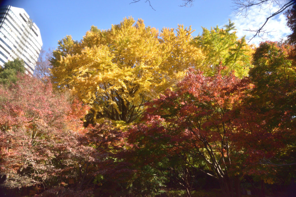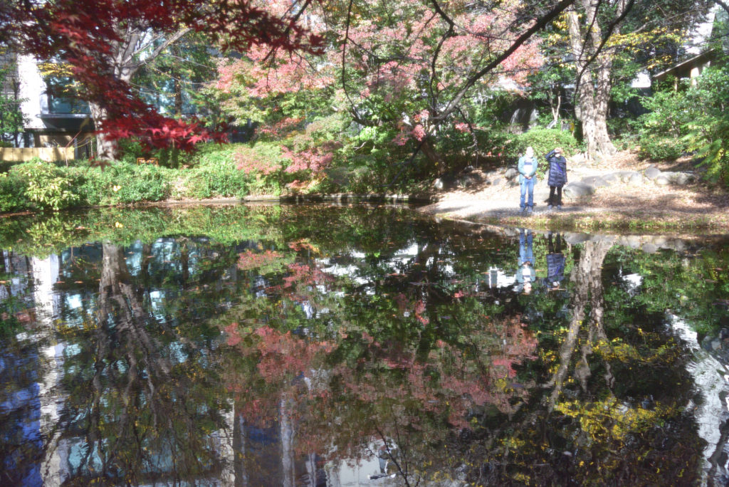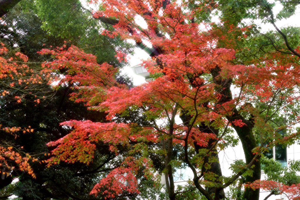 国道246 草月会館とカナダ大使館に挟まれ目の前は旧赤坂御所 現在は上皇様がお住みになってう仙胴御所 もみじの紅葉が今盛り