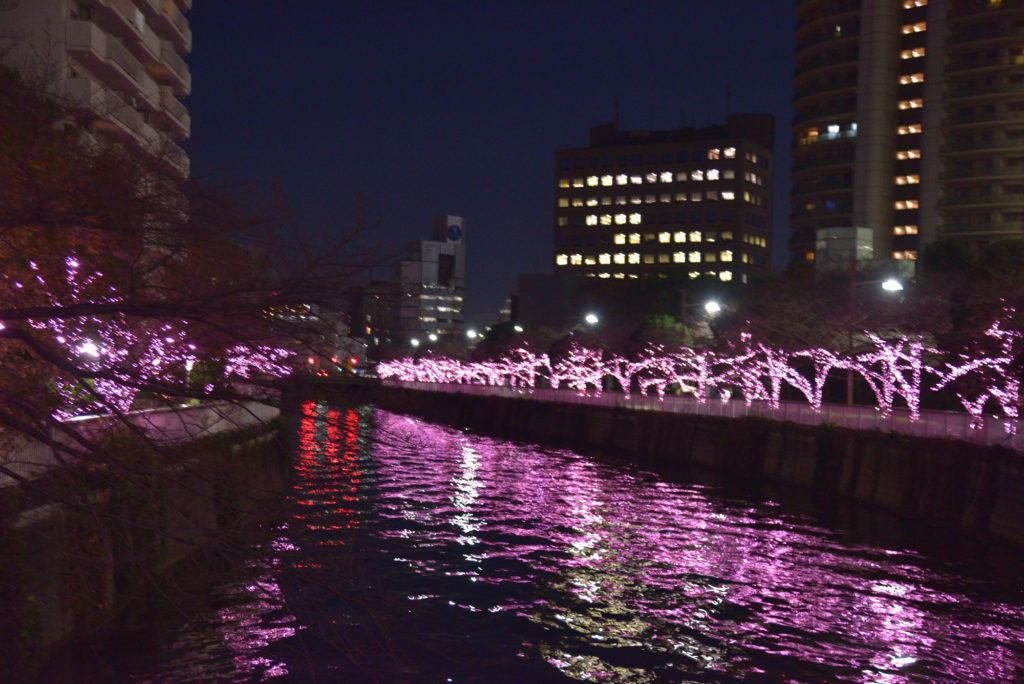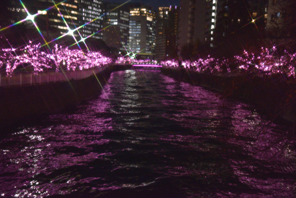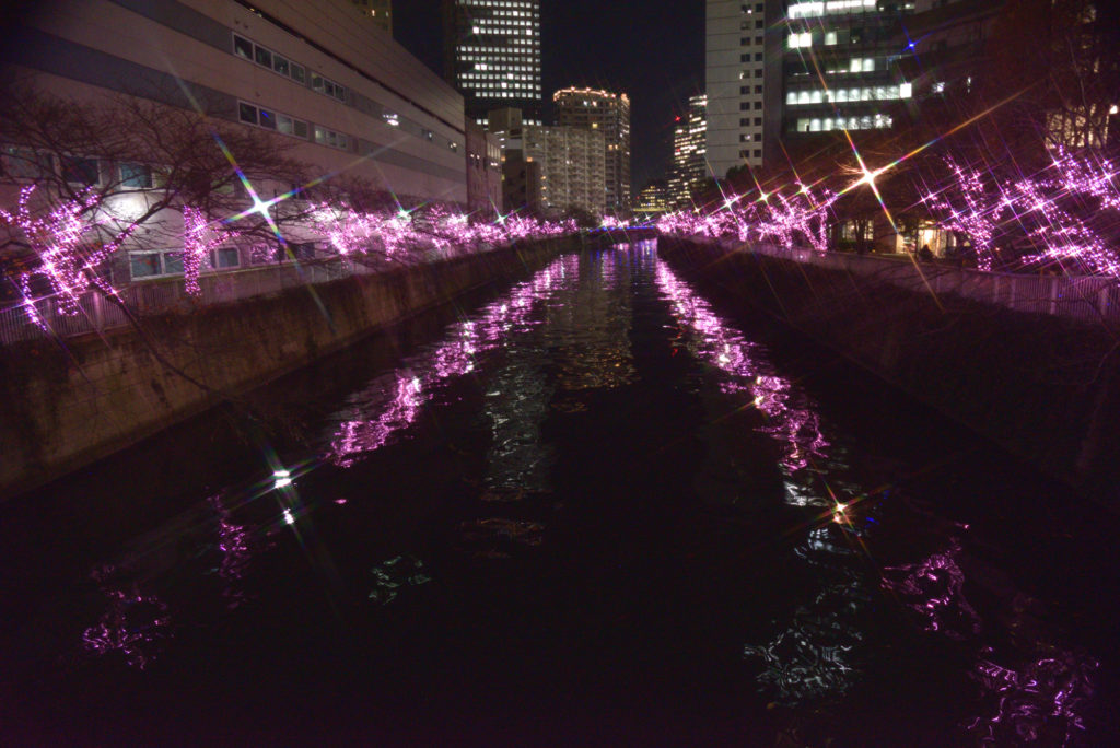 16時まで表参道でシルバーの仕事 恵比寿から目黒 五反田を抜け大崎駅前から目黒川に cとっと早めについた 点灯は17;00 時間通り点灯
