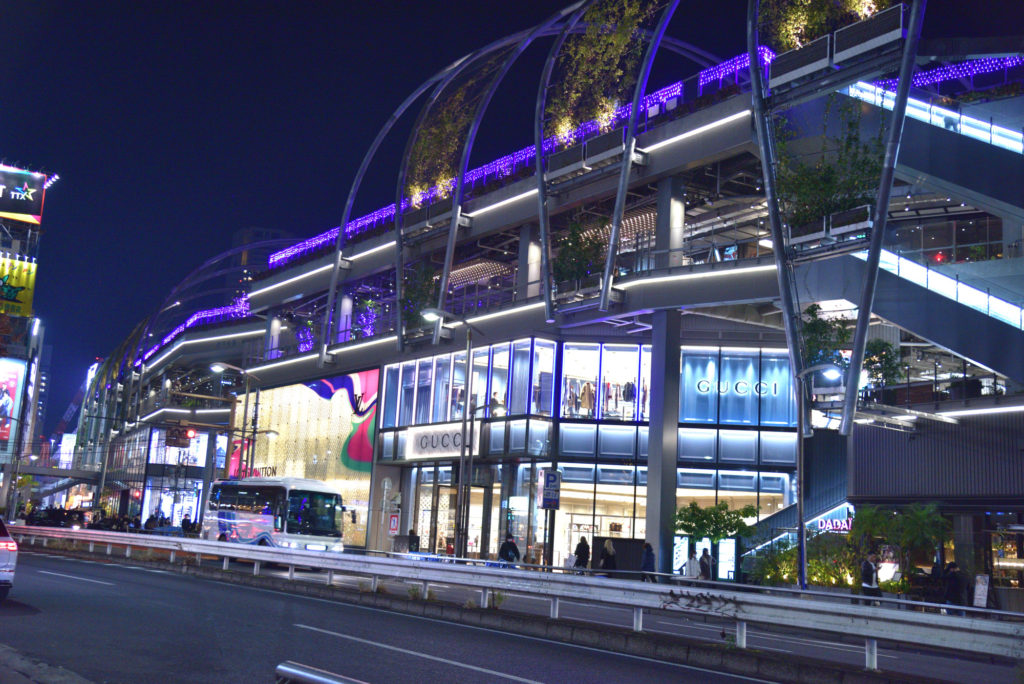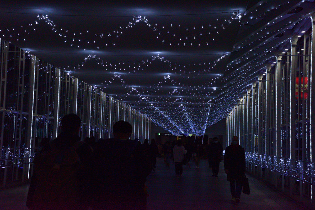 渋谷駅とヒカリエをつなぐ連絡通路 時間によって色変化