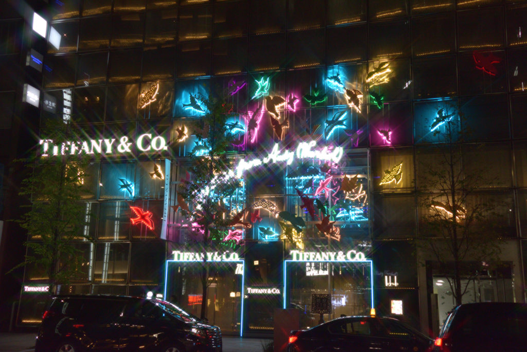 銀座中央通りを京橋から銀座に向かうと華やかなTiffany