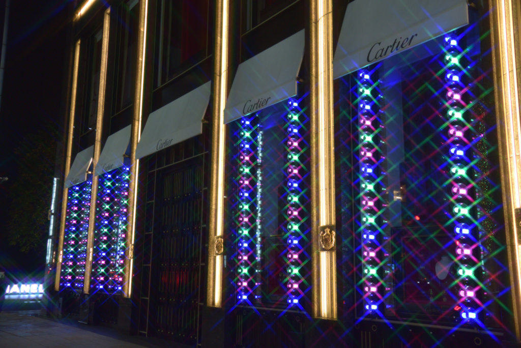 都心のイルミネーションを追っかけていると店舗等のデコレーションが華やかに