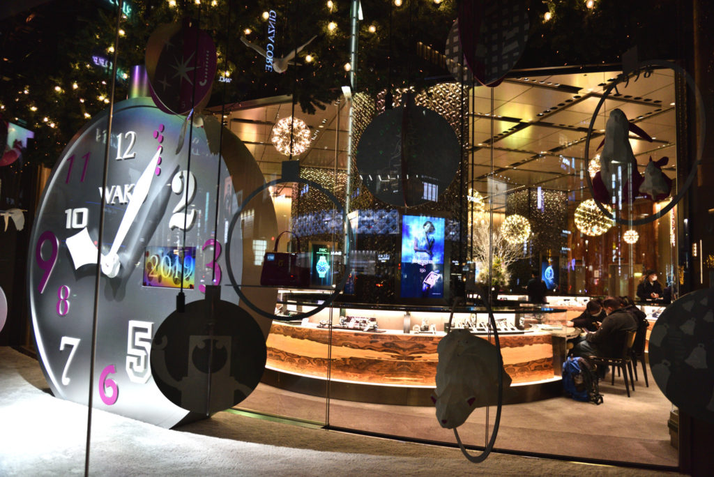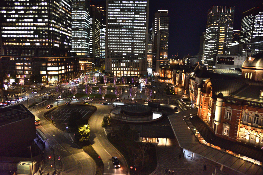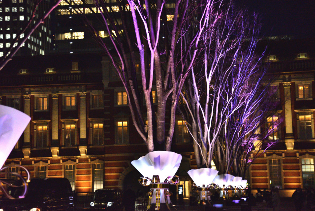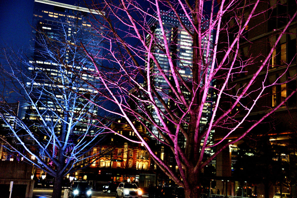 2022年12月21日(水)から25日(日)までの5日間、東京駅周辺エリアにおいて「東京ミチテラス2022」が開催。今年の演出テーマは「Anniversary City」。鉄道開業150年、丸ビル20周年、新丸ビル15周年と、東京駅・丸の内エリアにとって記念すべき年で、その歓びを分かち合い、幸福を実感できるような演出を企画。「感謝・上品・幸福」などの花言葉を持つピンク色のバラ(ピンクローズ)をテーマカラーに、丸の内中央広場と行幸通りの樹木の全エリアを染め上げ、パステルカラーの明るい色彩が徐々に移ろう。東京駅丸の内駅舎の樹木には、樹木全体を花束に見立てた装飾を行い、祝福ムードを楽しめるイルミネーションイベントとして演出 東京駅から日本橋方面に 銀座4丁目から皇居のライトアップを見ながら帰宅
