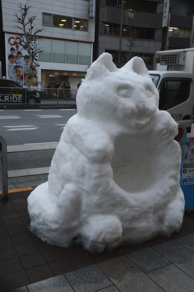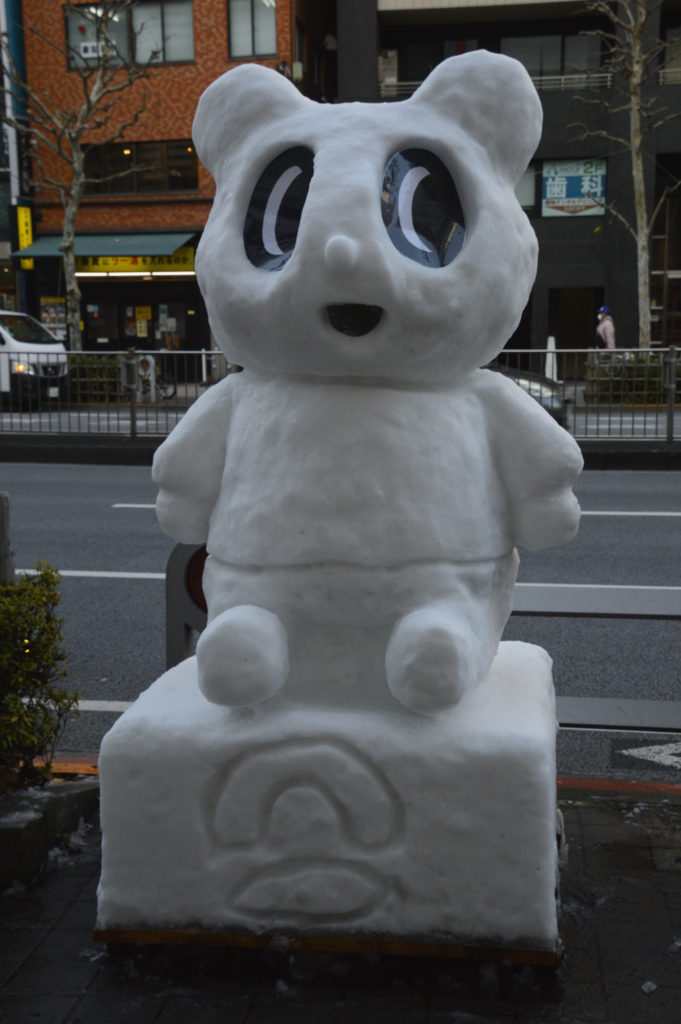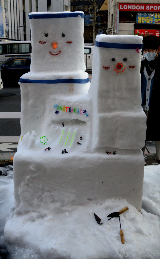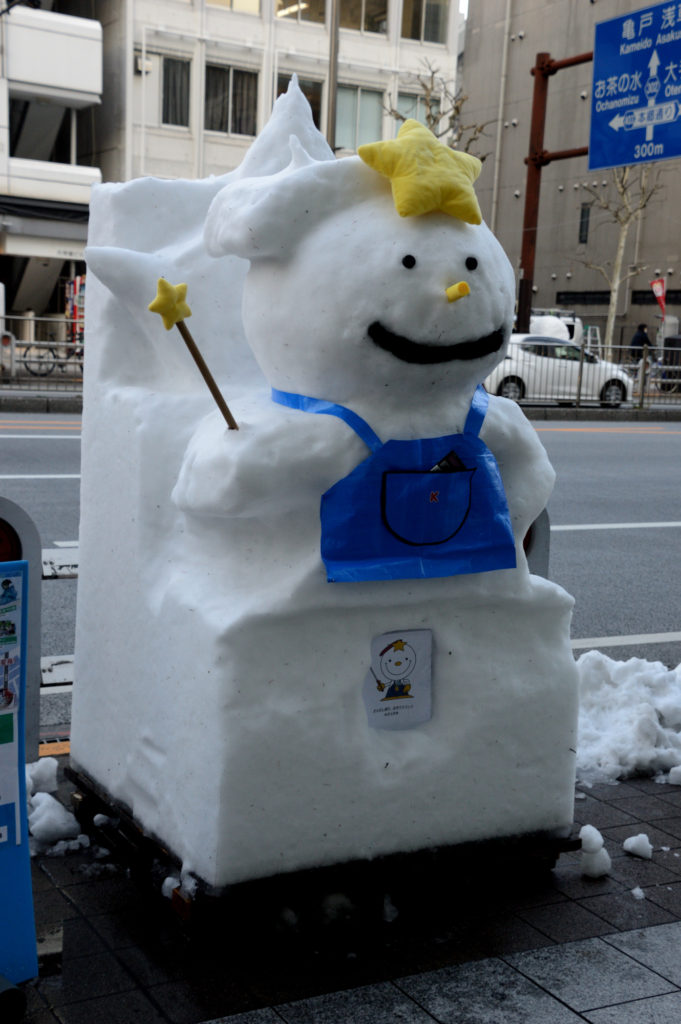 帰路神田小川町スポーツ用品店街 靖国通りに雪だるまがある