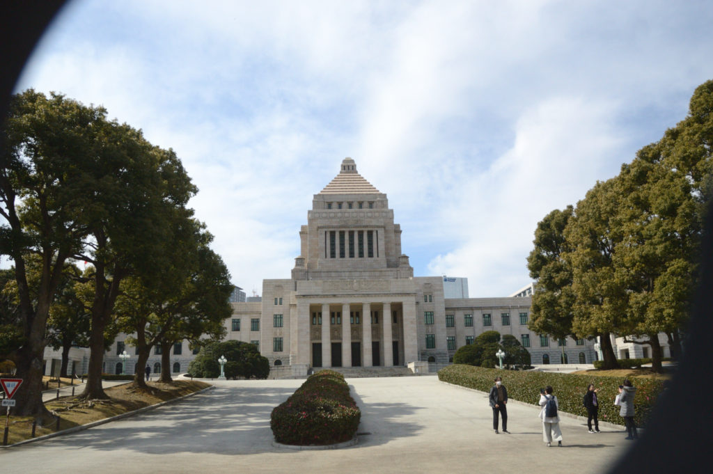 今は国会開催中 右手が衆議院 左手が参議院 見学者がいた
