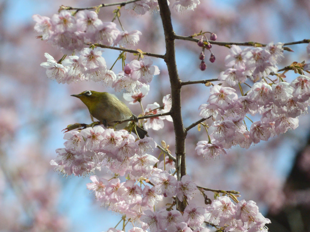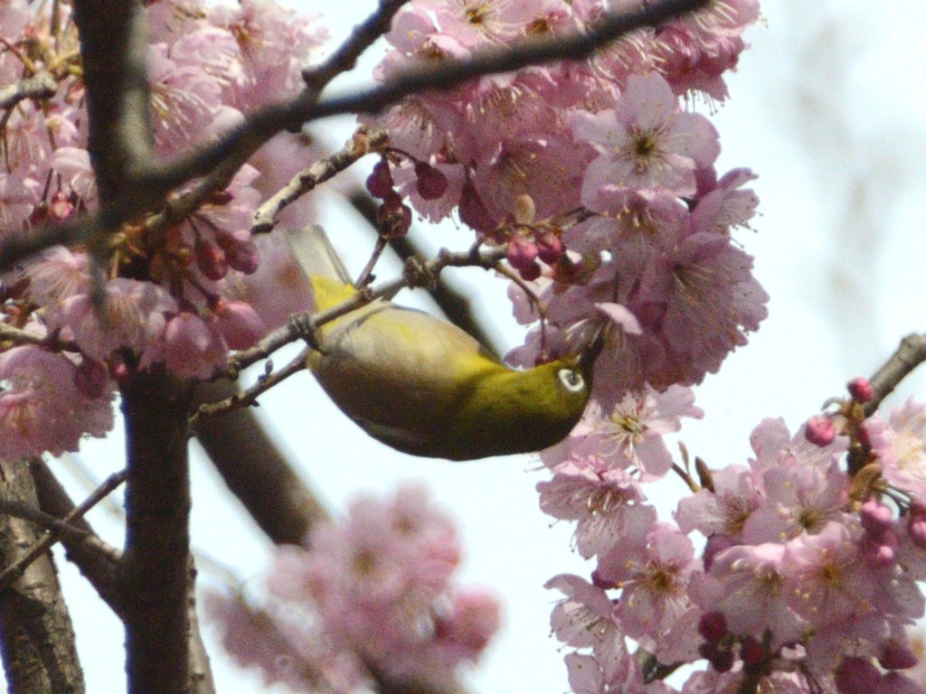 議事堂に向かっていくと八重の桜の木がある 手前にあるのがこの桜 鳥のさえ釣り