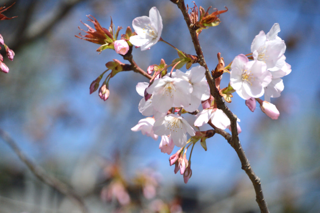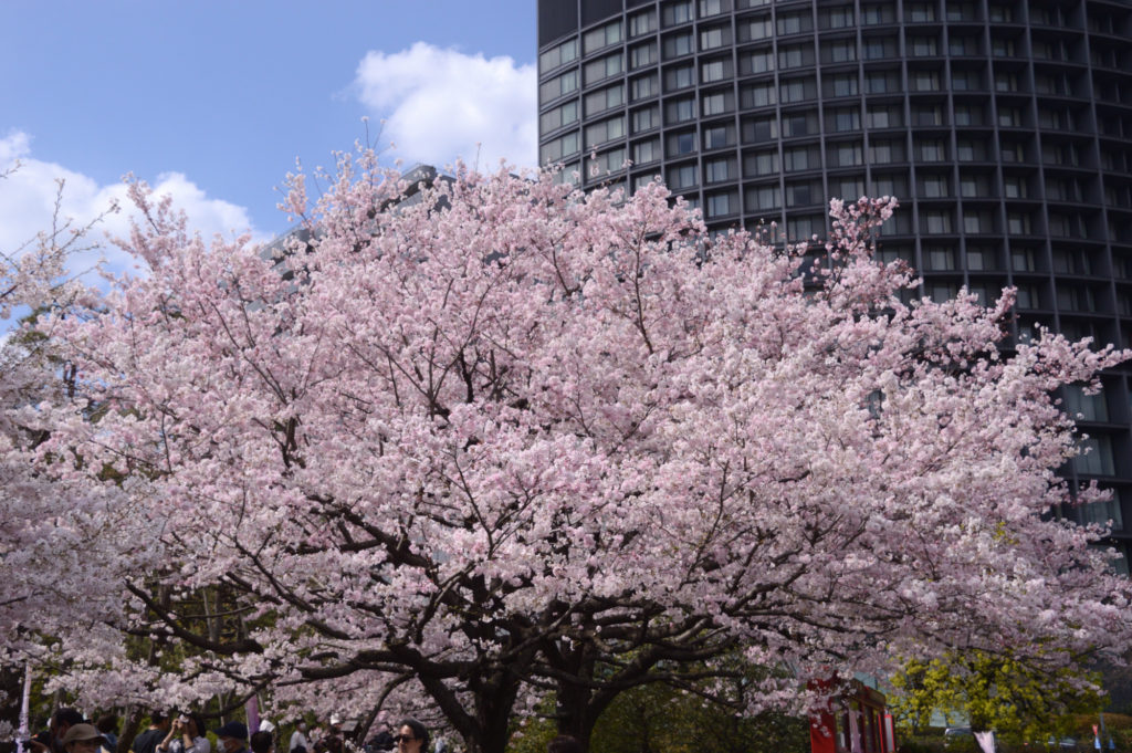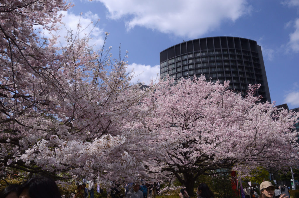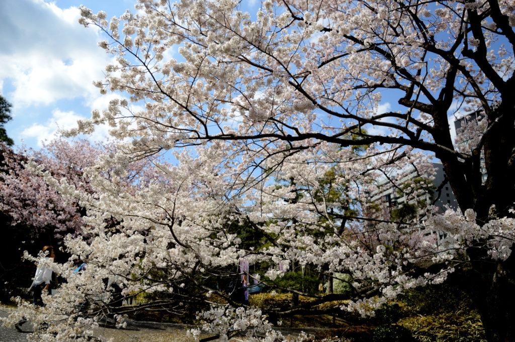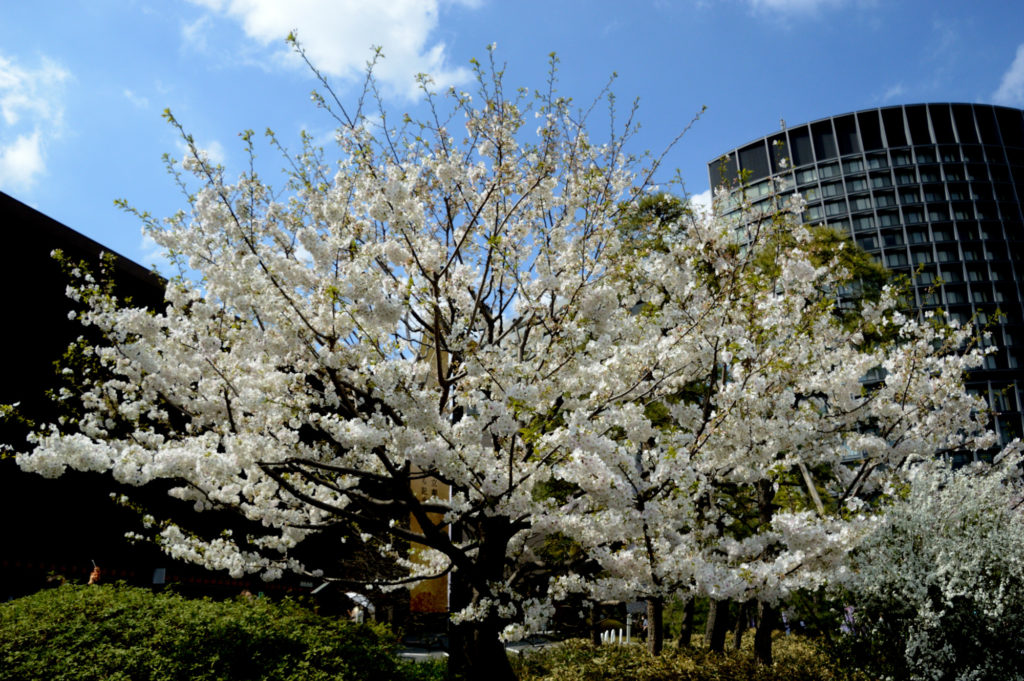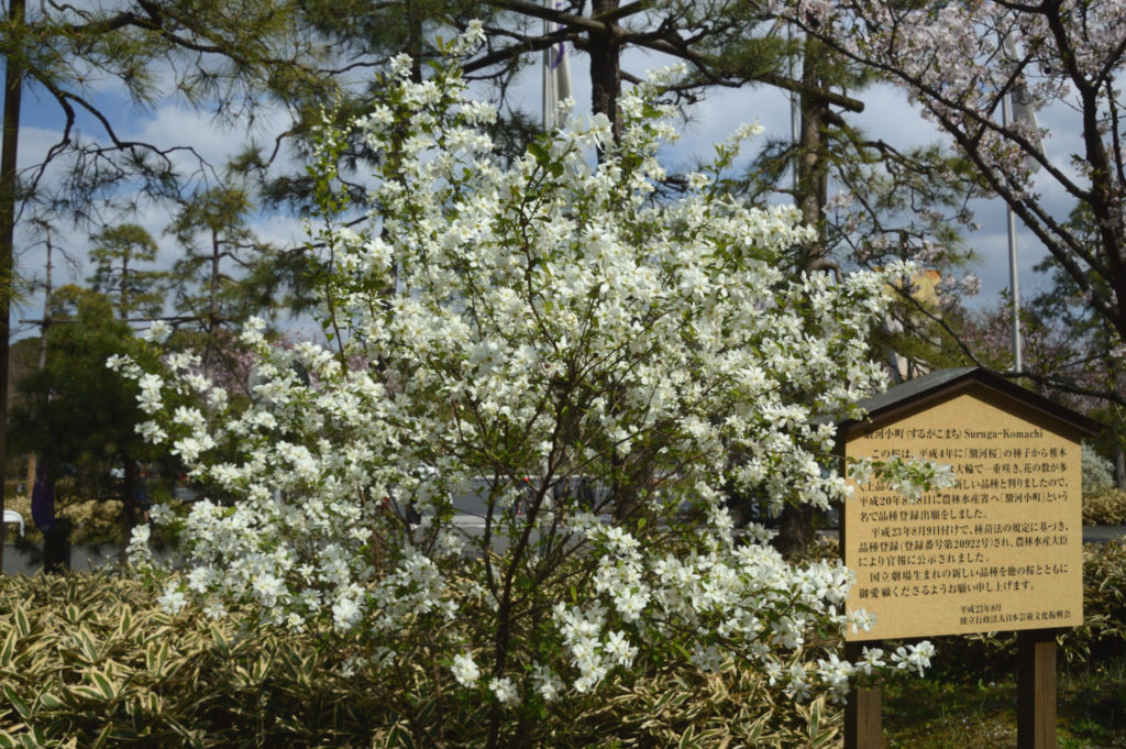 国立劇場の前庭には劇場生まれの新品種・駿河小町をはじめ、駿河桜、小松乙女などソメイヨシノではない10種類の桜が20本植えられており、春には来場者の目を楽しませている。見頃はソメイヨシノよりやや早いものから、遅咲きの品種もあり、比較的長い期間、桜を楽しむことができる
