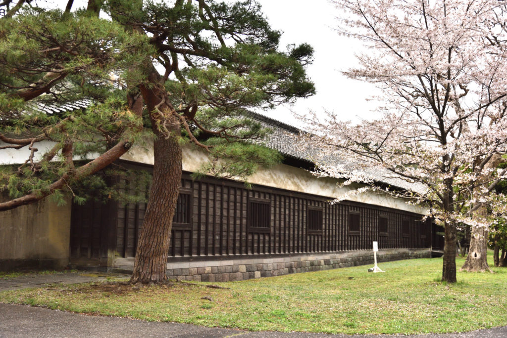 乾門を抜け東御苑に行くため北桔梗門を抜け右手に天守台 左手にピンクした桜