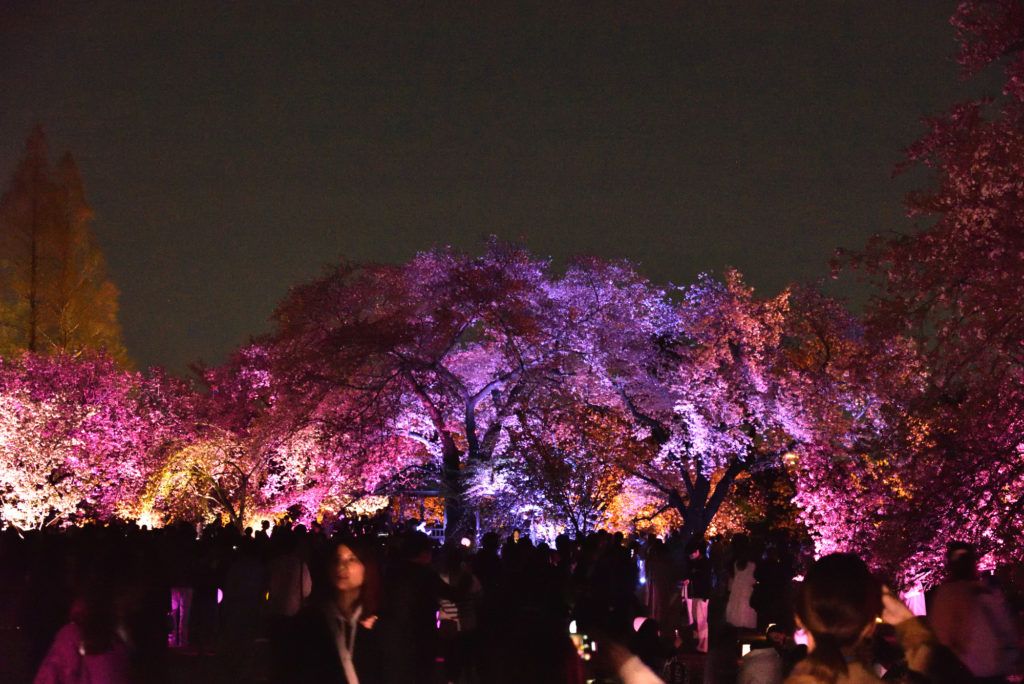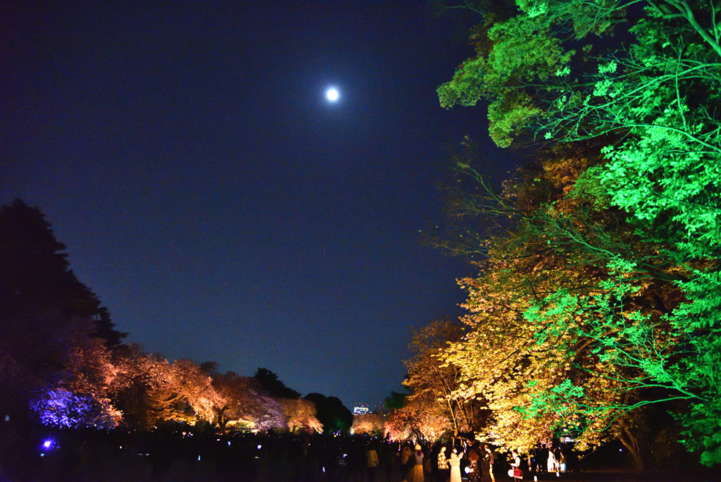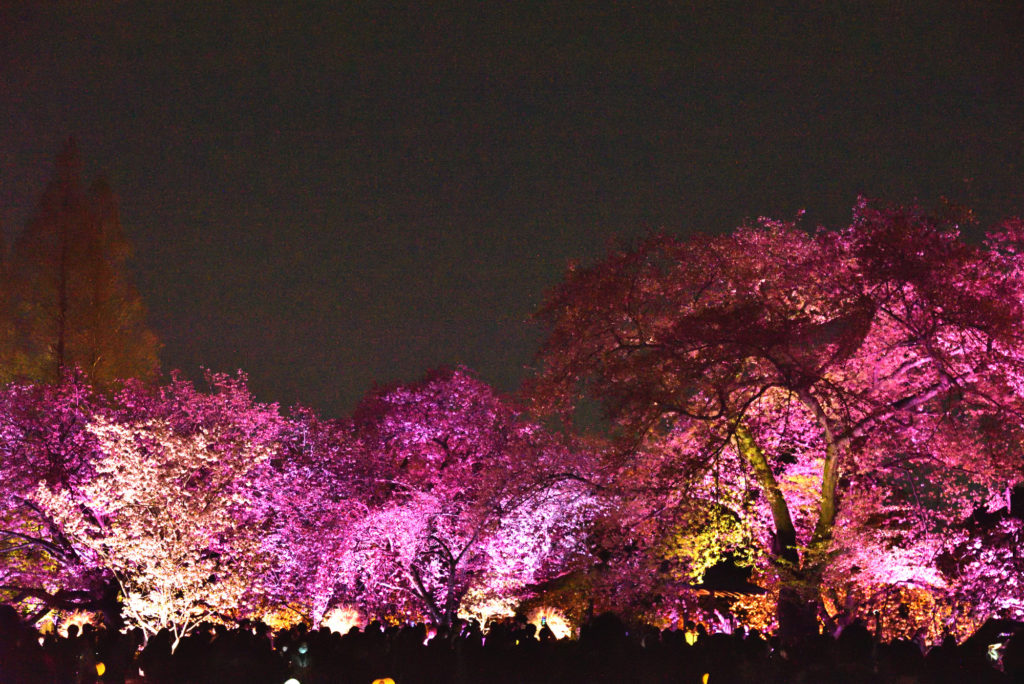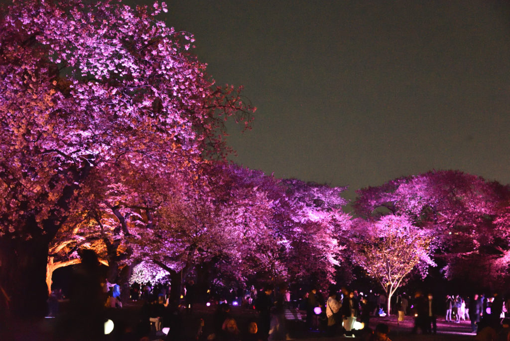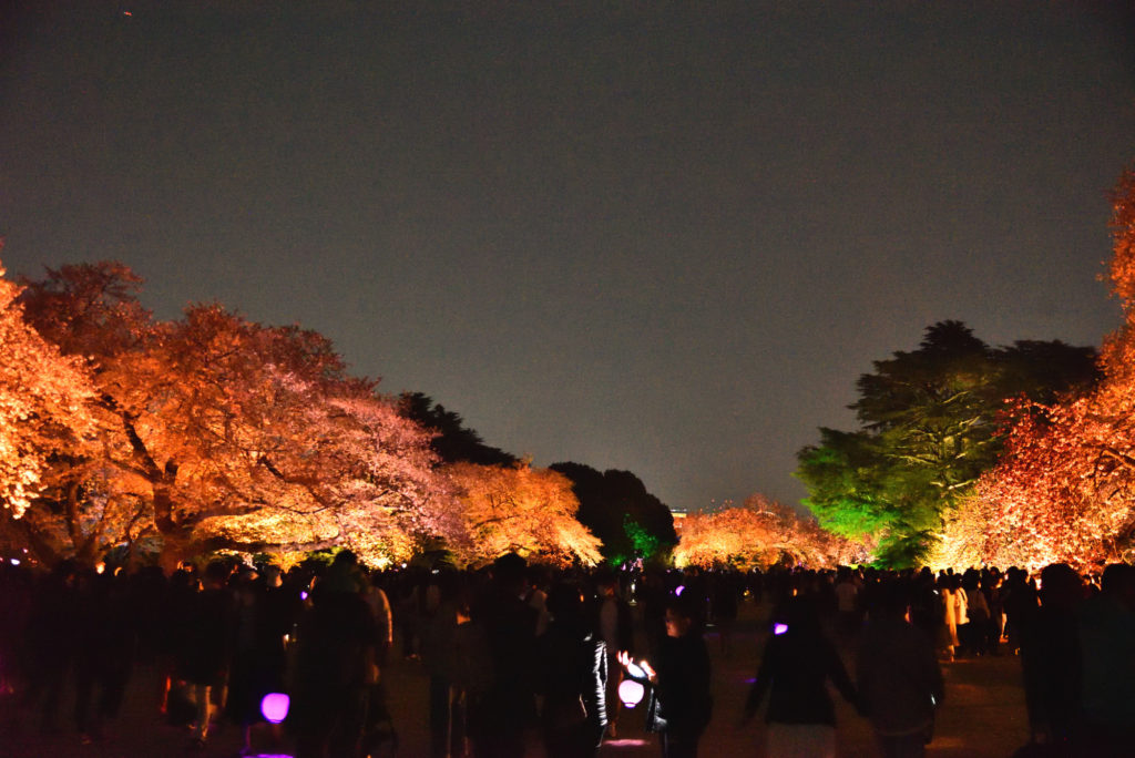 都内屈指の桜の名所である新宿御苑とネイキッド(NAKED, INC.)が初のコラボレーション。「NAKED桜の新宿御苑2023」では、新宿御苑に咲く約70種約900本もの桜を、満開になる桜の品種に合わせてライトアップ。いつ来ても光のアートに包まれた、幻想的な満開の桜を楽しむことができる 宣伝文句に誘われて4月5日に行ってみた 平日なのだが開園が19時 すごい人出で大木戸門から新宿門まで人の列