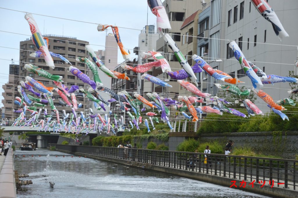 最初にミットタウン六本木 例年通り鯉のぼりが泳いでいる