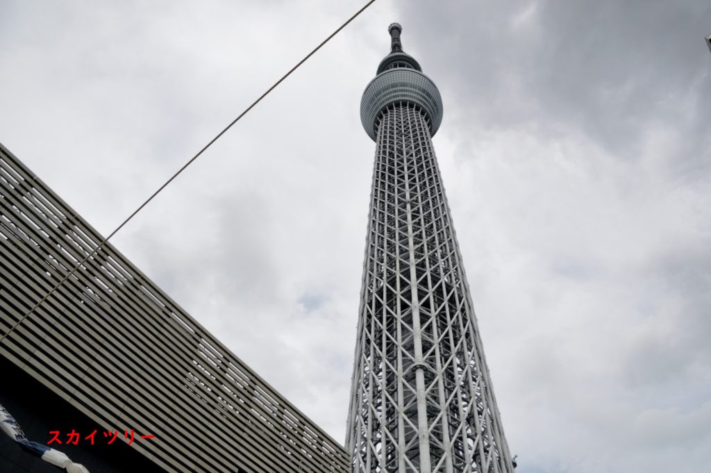 吾妻橋袂から 隅田川 首都高 アサヒビール 墨田区役所の間のスカイツリー