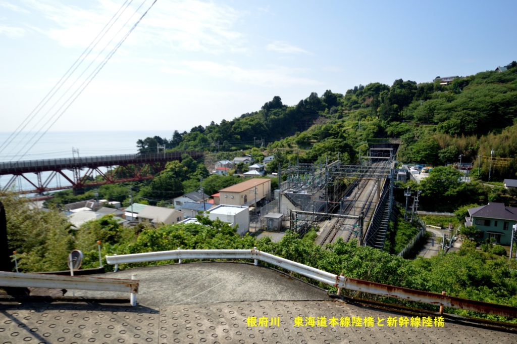 根府川駅からすぐ 新幹線と東海道本線 両方が見える