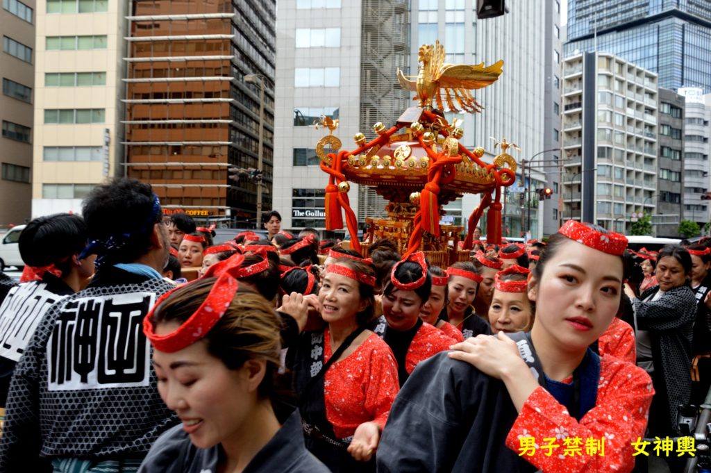 神田祭は2年毎 4年ぶり この町内は女神輿が伝統 イキイキしてます