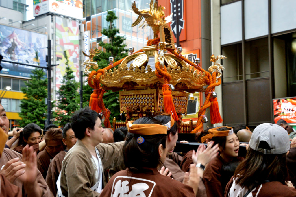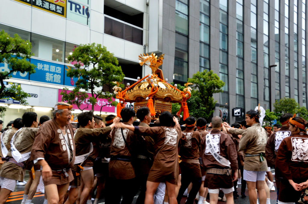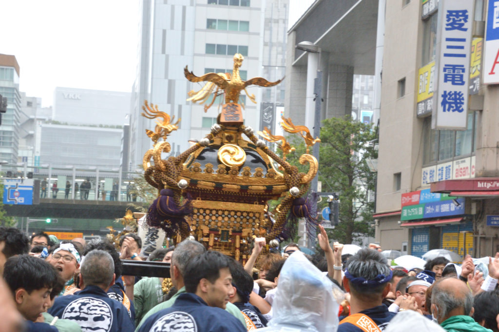 宮入し町会に戻って町内を練り歩く 日本橋三越前