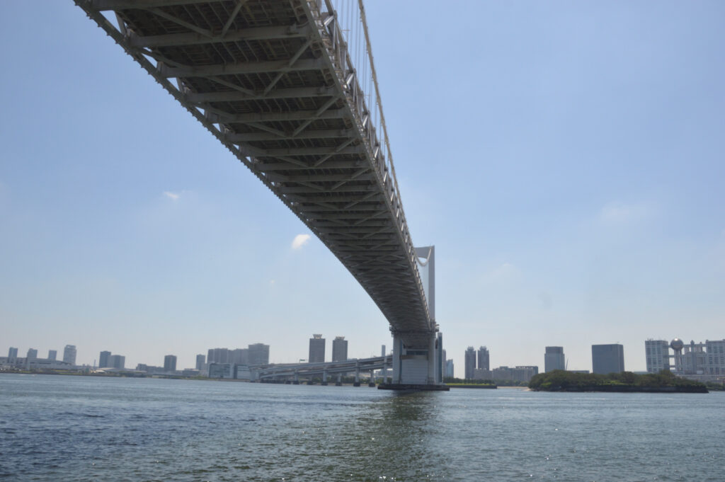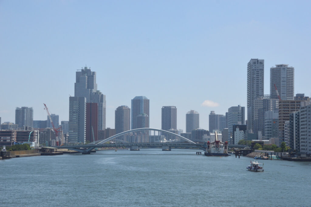 増上寺 浜松町を抜け竹芝桟橋に 伊豆七島に向かう客船は係留されてない 隅田川河口が 正面は築地大橋 その先が勝鬨橋
