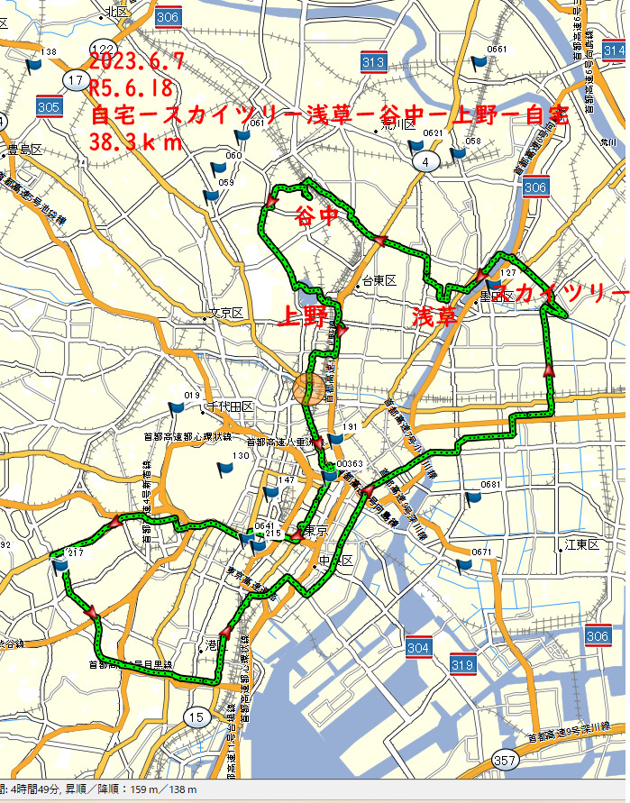 天気予報だ晴れ 高温とテレビで 予定通り10時自宅出発 六本木から何時ものコースで築地場外前を左折 隅田川を渡り四ツ目通りをスカイツリー