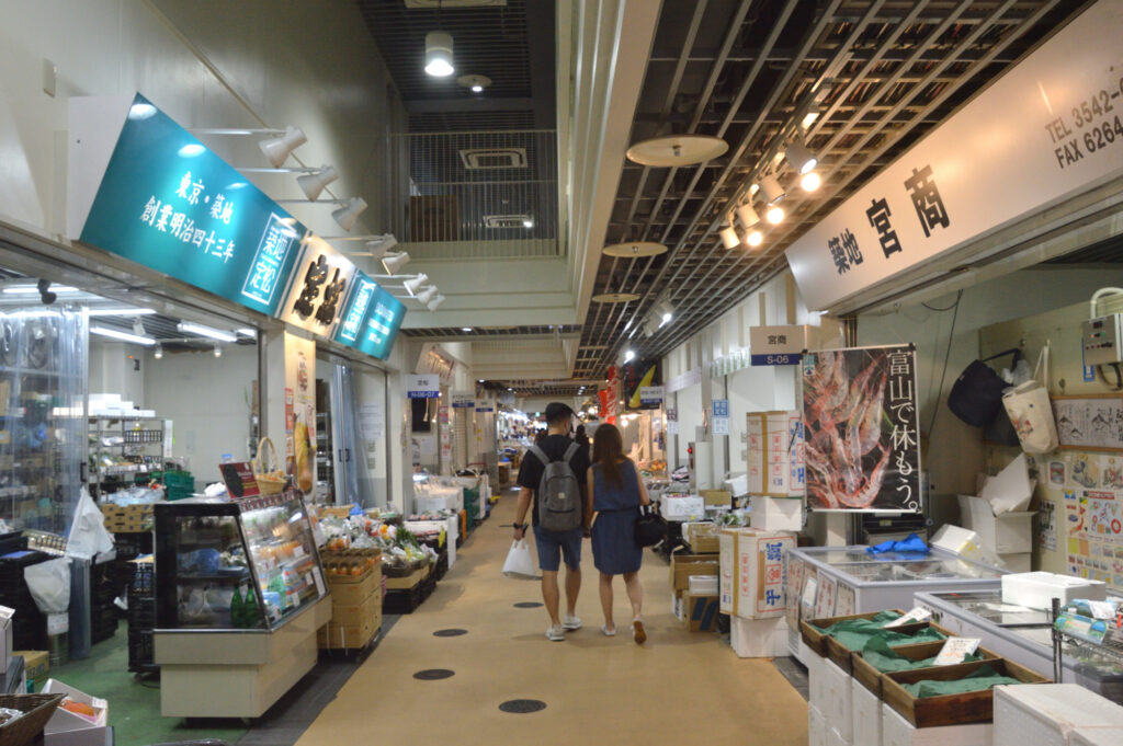 生ものを販売する海幸橋棟はこの通り閑散としてる それも12時前後なので間もなく閉店時間だから 観光客はここは通り過ぎ写真を撮るところ