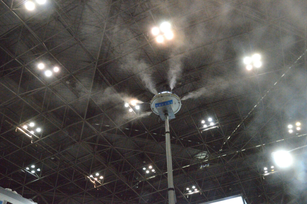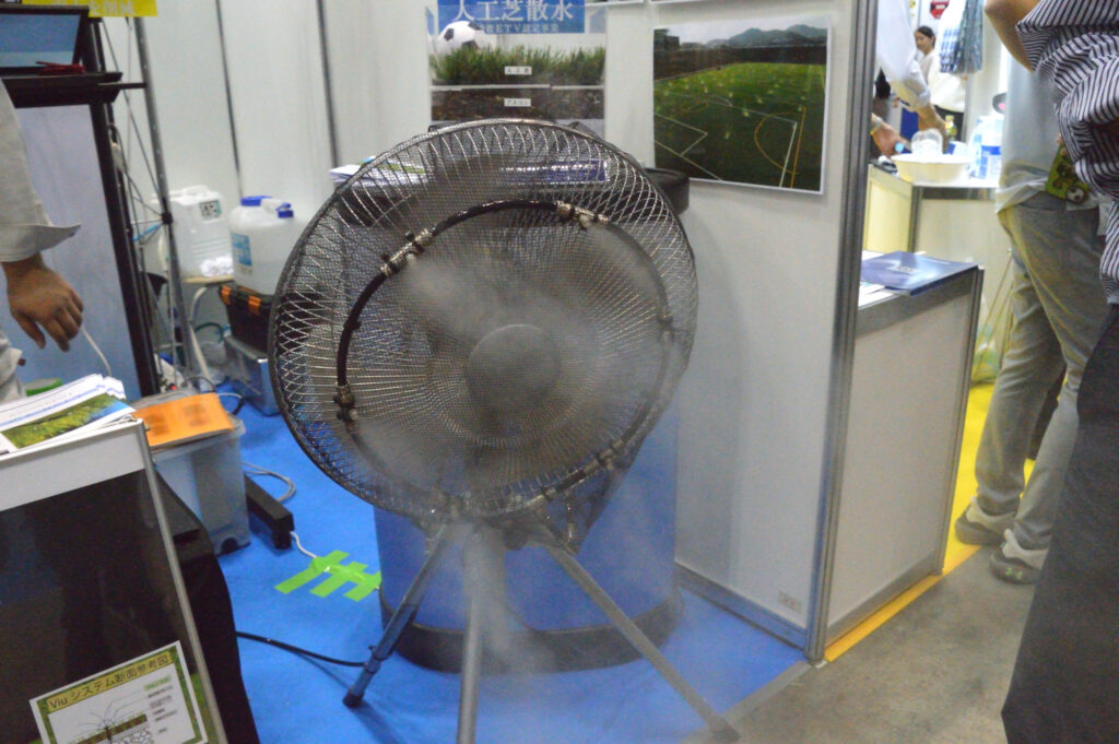 今年は異常気象 会場はこのような小規模ミストから大規模な冷風機等々 又最近作業してる人が来ているベストにFANがあり電池で動作内部に令風