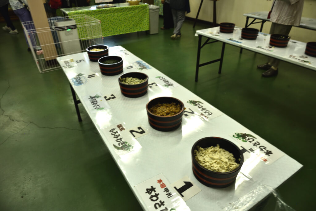 旅行代一人5000円 交通費 昼飯がついて このため色々なお店に寄ることに 甲州でワサビ漬けのお店に 試食 久しぶりに味わったがおいしかった