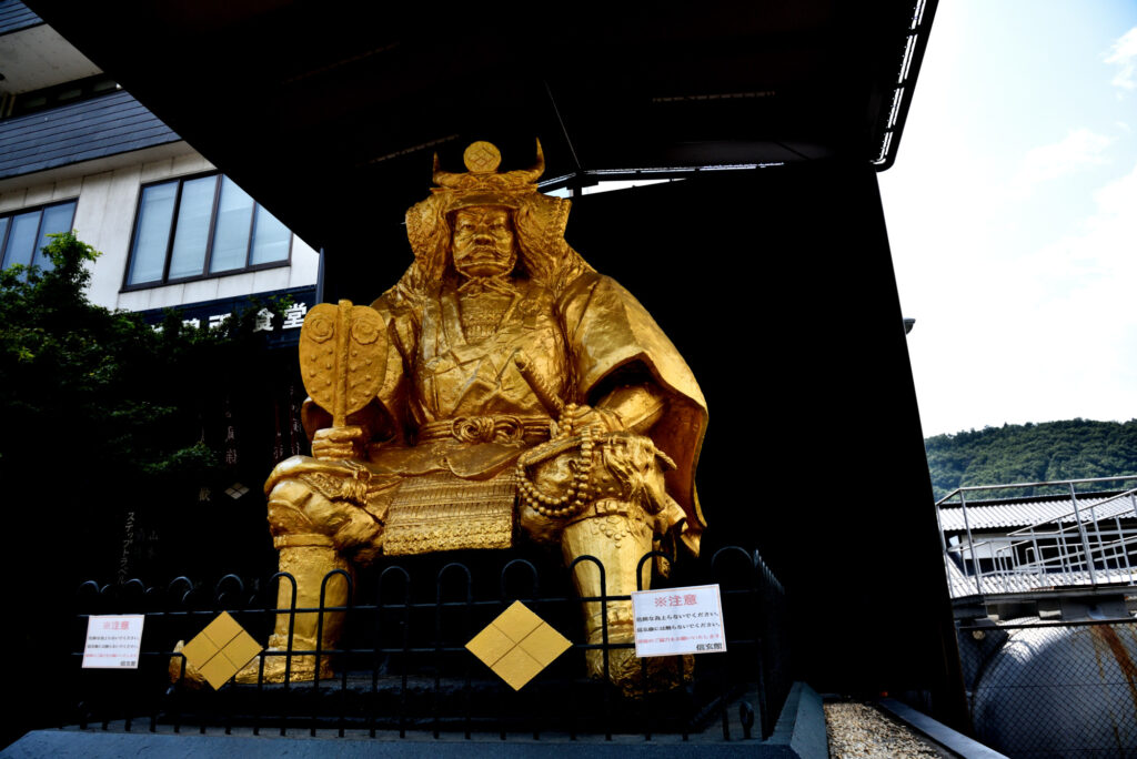 恵林寺前にある信玄館で昼食 名物の信玄像
