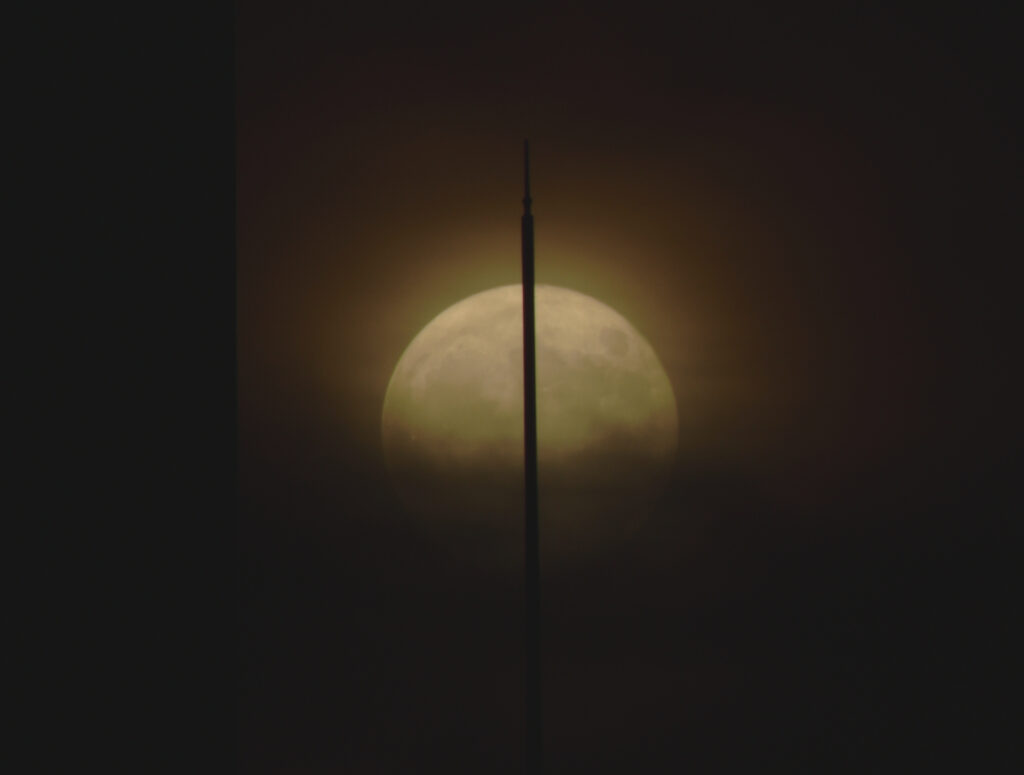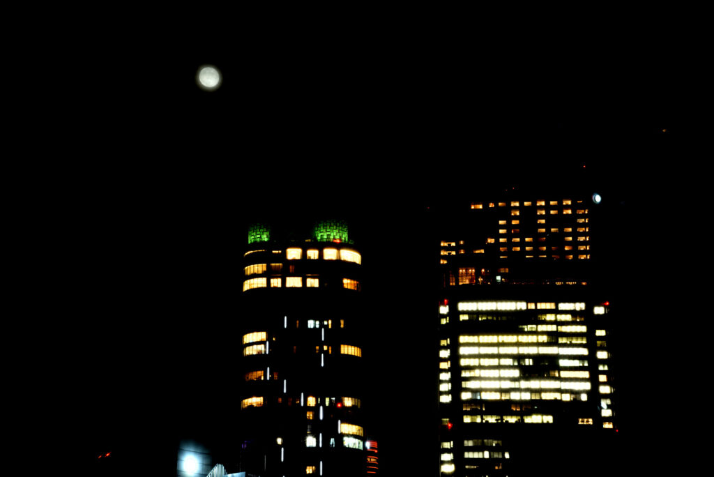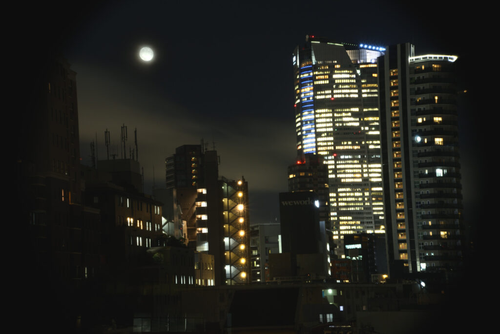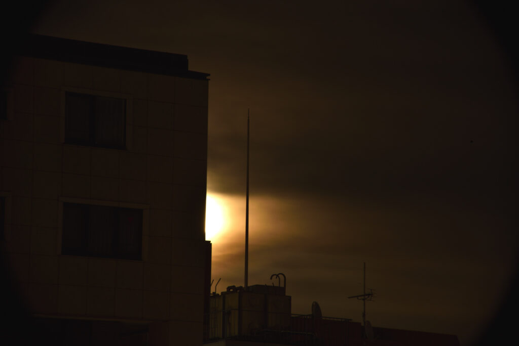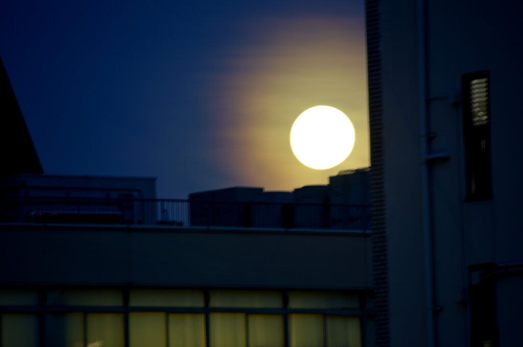 8/30 前日の 19時前ビルの谷間からスーパーブールームーン