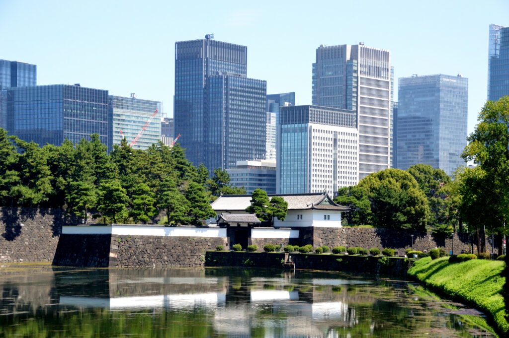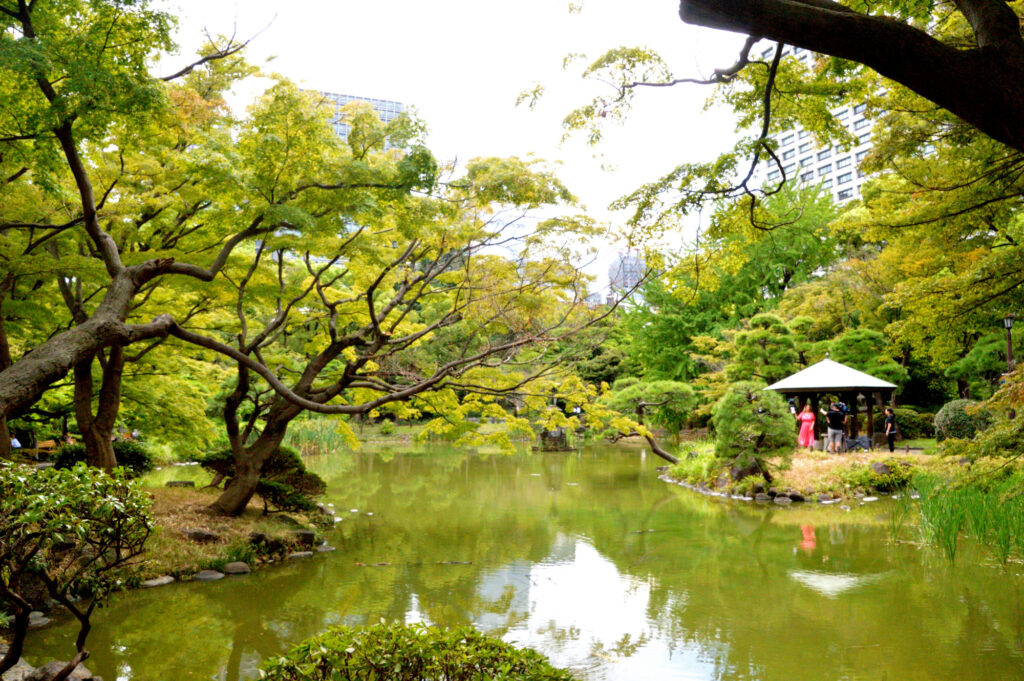 日比谷公園 日本庭園 早朝にもかかわらず外国の撮影隊が東屋に