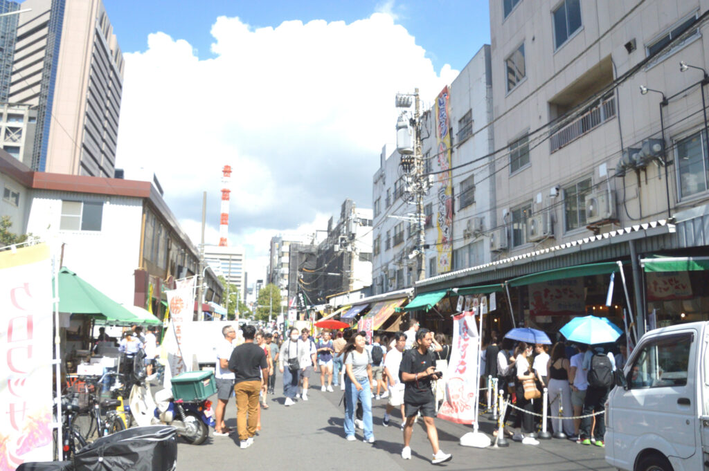 相変わらず外国の観光客が多い 卵焼き お寿司 おにぎり イカ焼き等々 食べ歩き