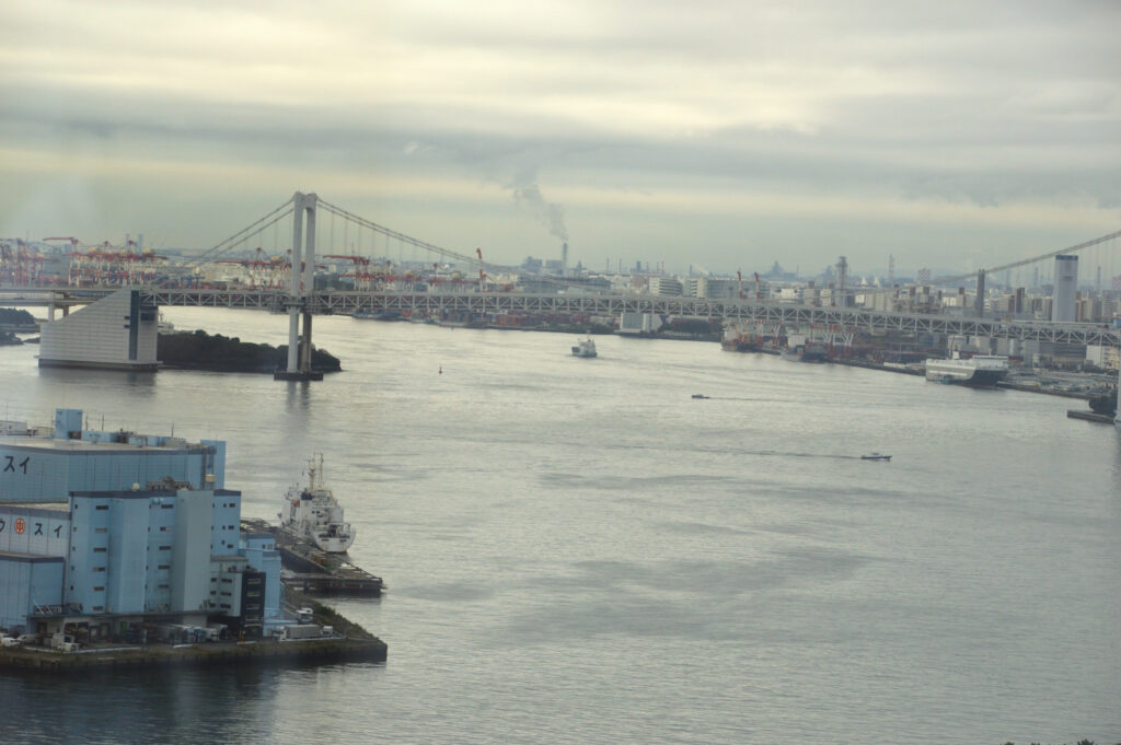 隅田川河口とレインボーブリッジ