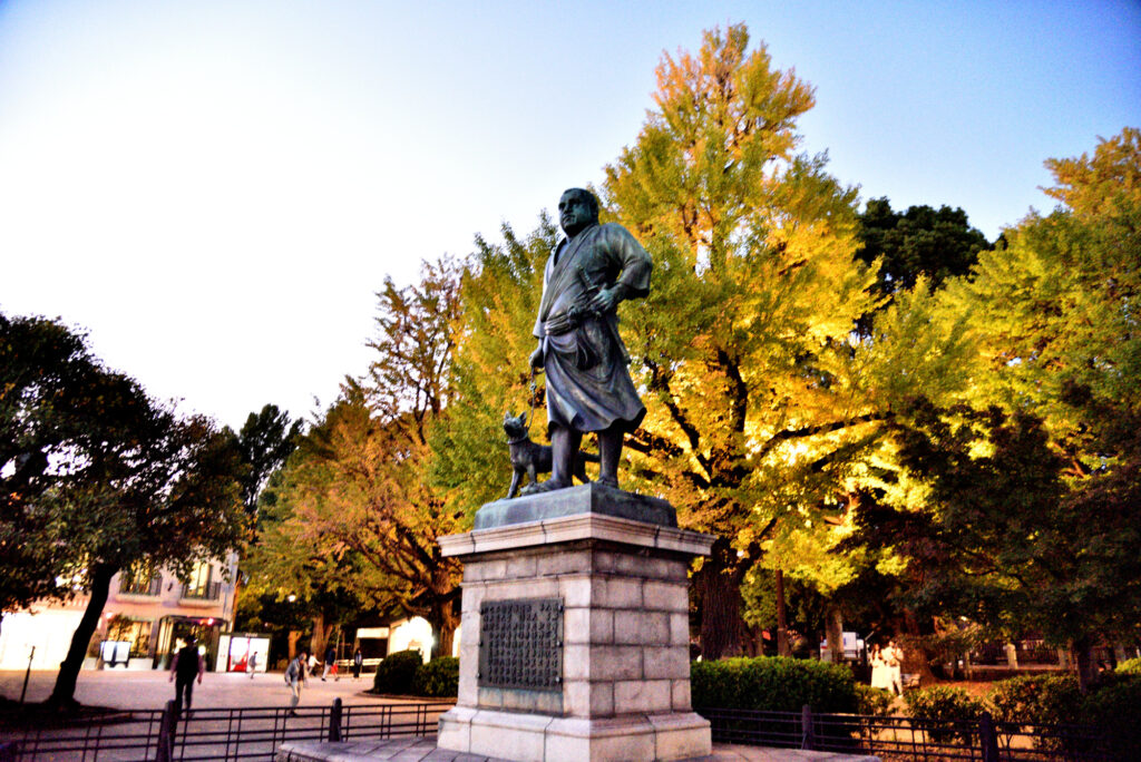17時30分ごろ上の到着 久しぶりの西郷さん 銀杏が少し色ずいている
