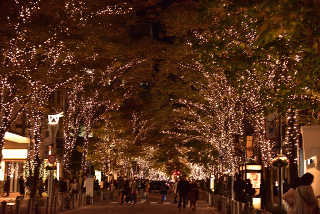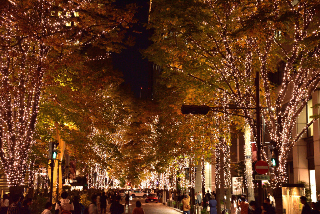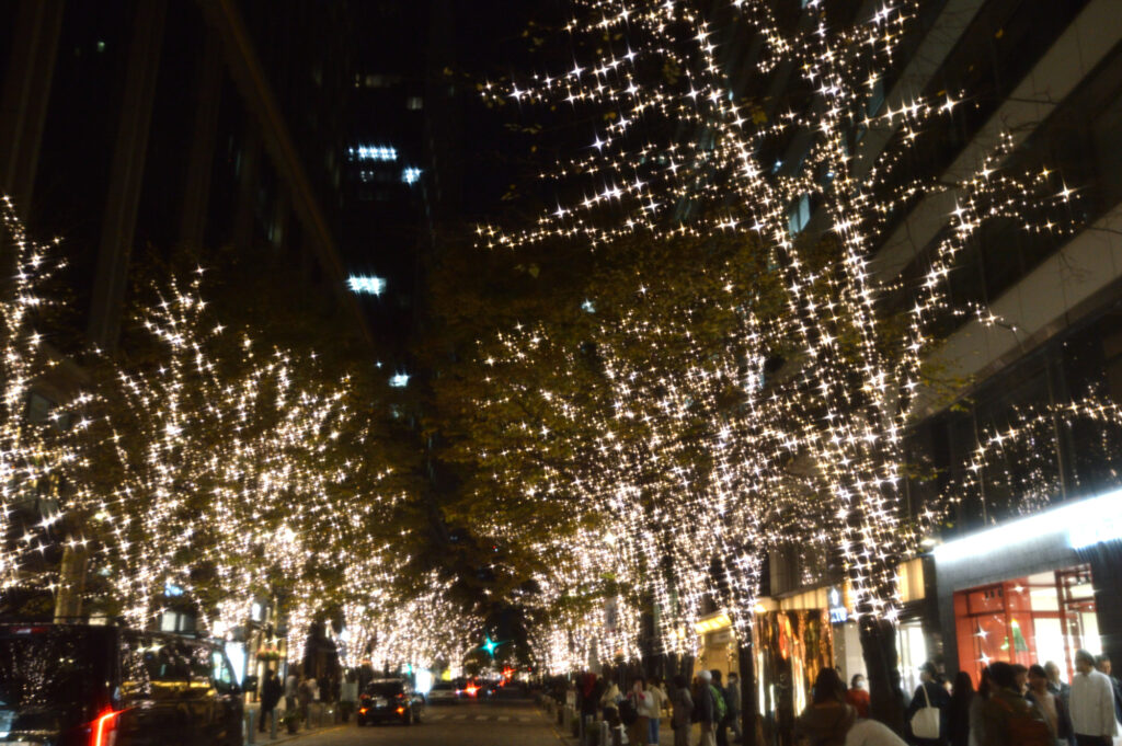 ミットタウン日比谷から道路を渡って有楽町 ペニンシュラ東京から丸の内中通のイルミネーション