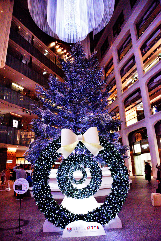今年のクリスマスイベントのテーマは「10th Anniversary Christmas〜想いを重ねるクリスマス〜」。 KITTE開業10周年を記念して、10年間の想いや重なりを思い起こすようなスペシャルイベントやアートが用意されている。開催期間中、1階アトリウムには本物のモミの木を使用した全長13mのメインツリー「White Layer Tree」が出現。まるでツリー自体が生きているように変化を続け、様々な姿を見ることができる。上空に浮かぶ最大13mにも及ぶ真っ白のストリングの層や、ツリーの根元に光る年輪の光りで、KITTE開業から10年間で積み上げてきた時間を感じられる空間を演出。