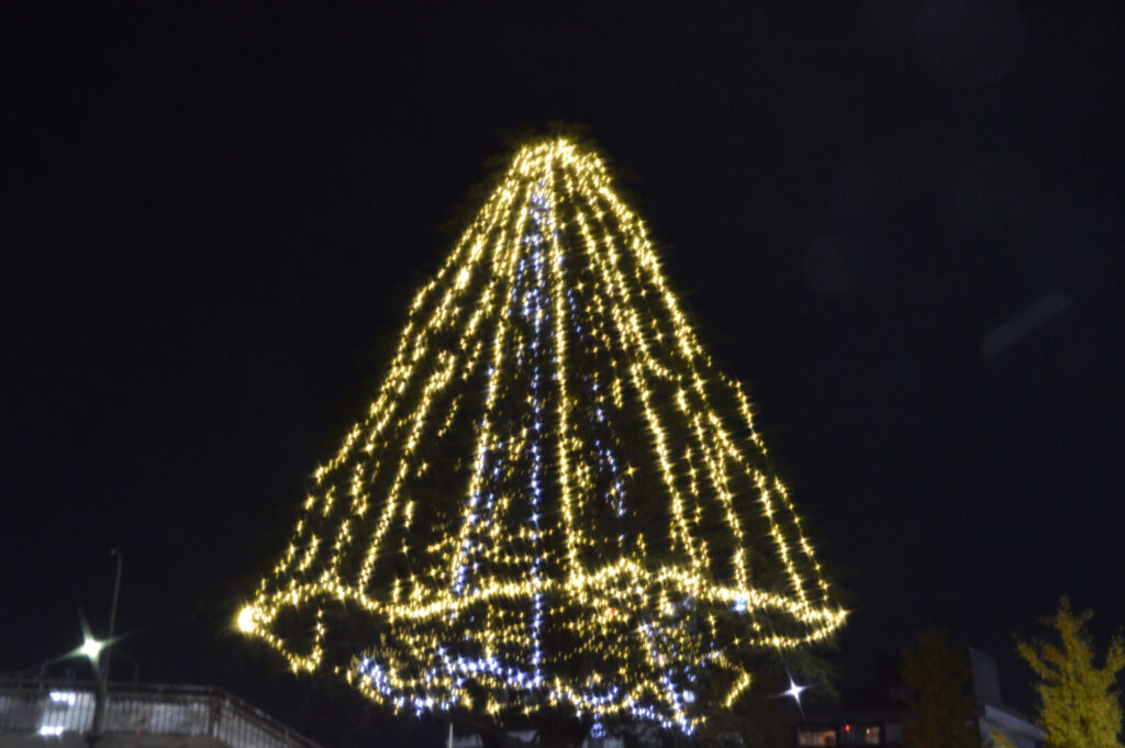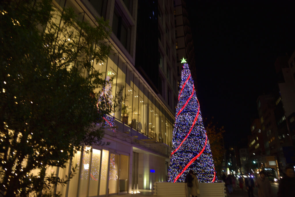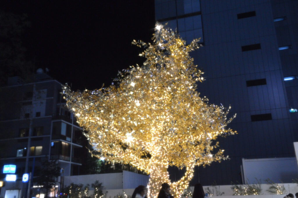 原宿口にクリスマスツリー 外資系の飾りは目立ちます