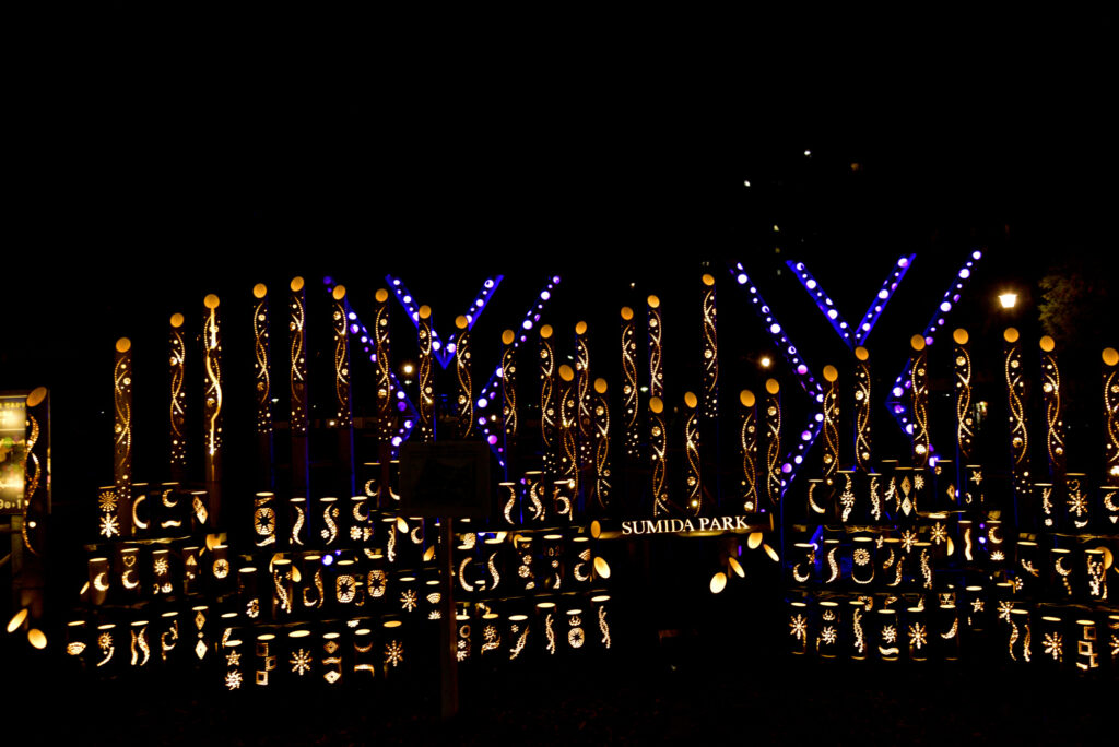 イベントは東武鉄道が主催する「東京下町回遊 竹あかり」の一環。東京スカイツリーと浅草(台東区)を結ぶエリアで魅力的な夜の街歩きを楽しんでもらおうと、スカイツリーの氏神でもある牛嶋神社に協力してもらった。ほかにも隅田川に架かる歩道橋「すみだリバーウォーク」などを竹あかりで飾る。2024年1月31日までの午後5時から10時に点灯する。