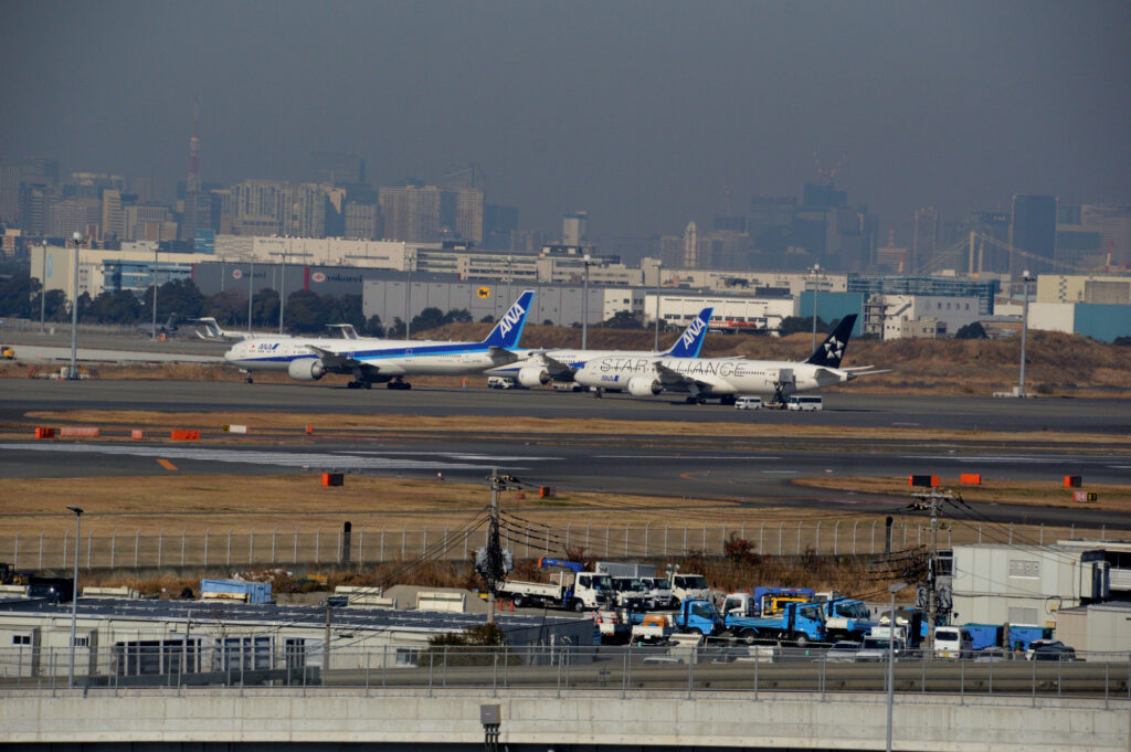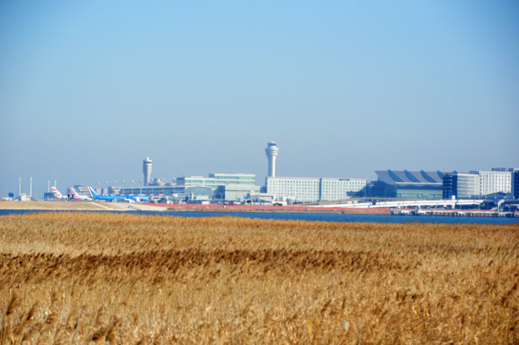 風向きで 出発していく飛行機 いつもなら到着便が見えるのだが