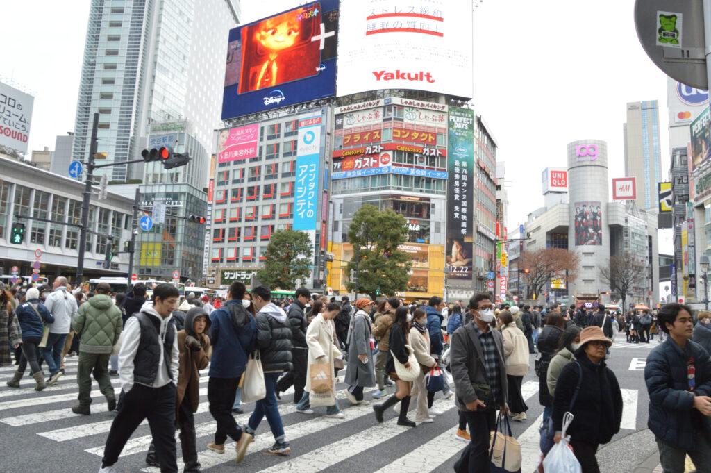 渋谷地下街で用事を済ませ地上に出ると 渋谷スクランブル交差点 観光客多し