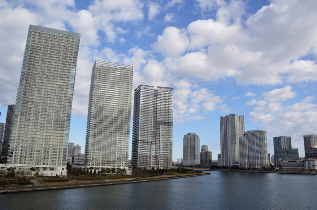 銀座 築地 勝鬨橋を渡り直進 晴海大橋上から豊洲方面 橋を渡り右折 豊洲市場前を通過