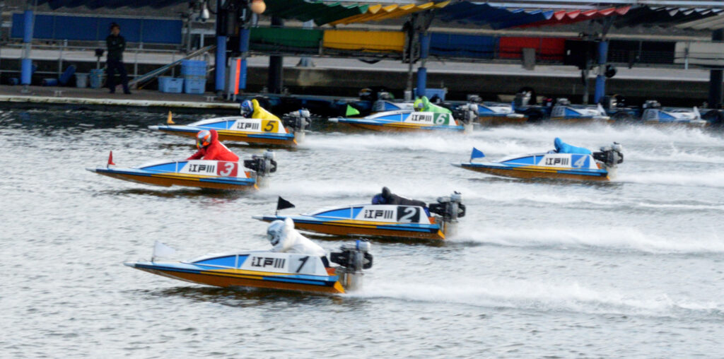 荒川河口から岩淵水門 隅田川取水口を目指す 船堀橋から荒川土手に 中川にある江戸川競艇が見える