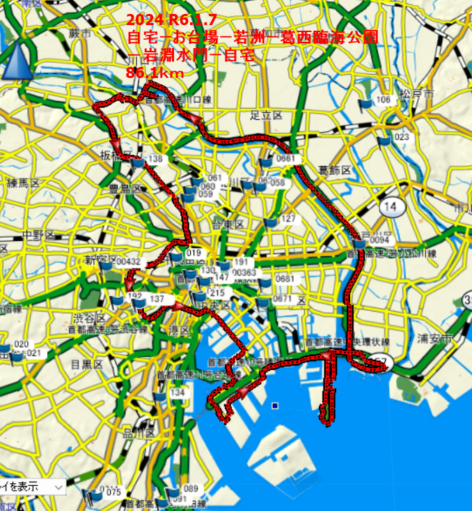 若洲海浜公園から荒川を渡り葛西臨海公園に入り ぐるりと回る 浦安 東京デズニランド