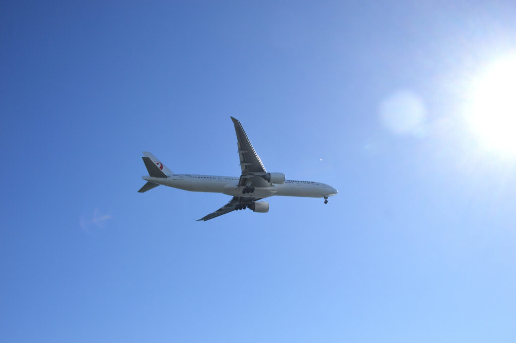 東京都野鳥公園 大田市場を過ぎて城南島に 羽田到着便が上空に